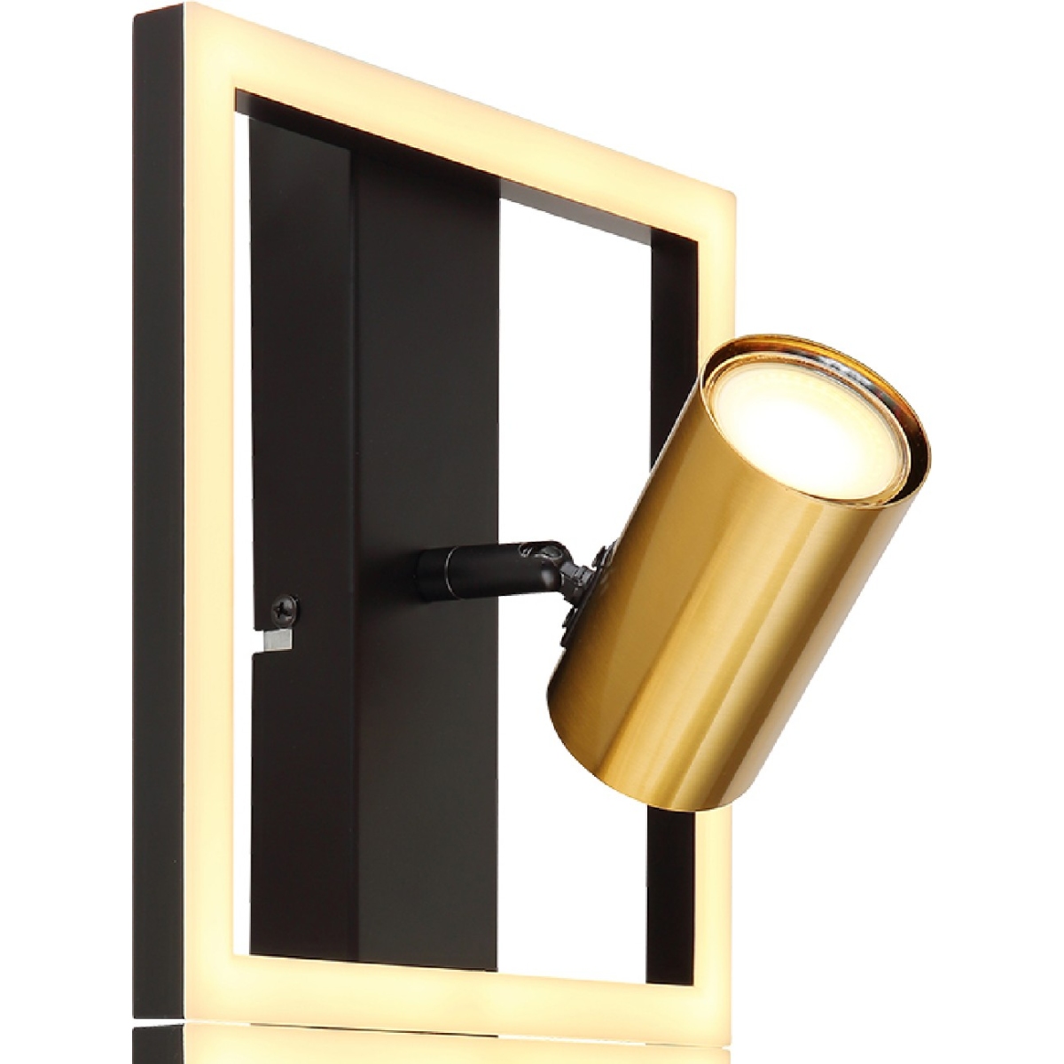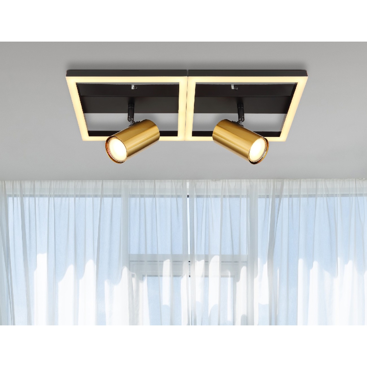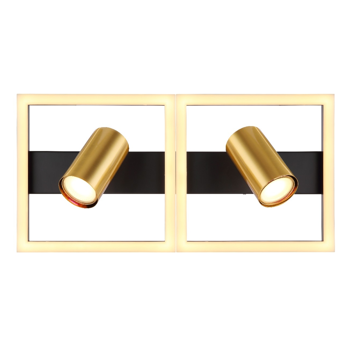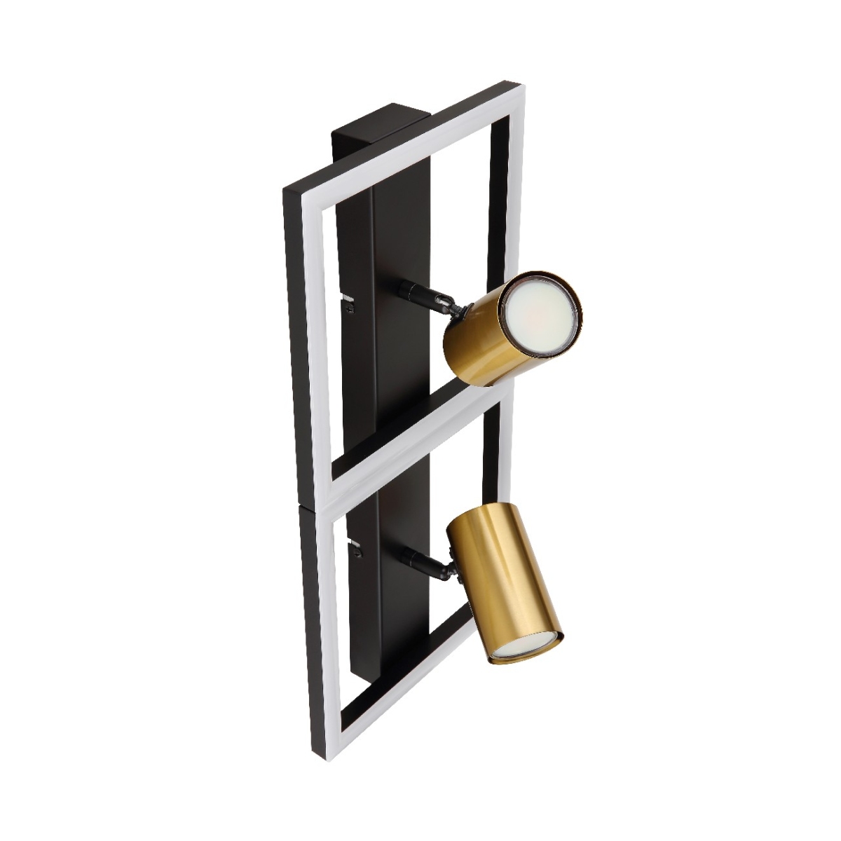 Ova moderna zidna lampa inspiriše svojim sjajnim dizajnom. Dva GU10 grla sa mesinganim okvirom i dva oblikovana pravougaona LED panela (44 x 22cm) proističu iz crnog zidnog nosača. Proizvodi 3000 Kelvina toplo belu svetlost i tako osigurava prijatnu sobnu atmosferu.