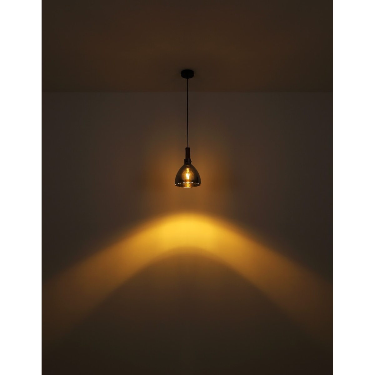 Ova prelepa visilica serije MATTEA inspiriše sjajnimm dizajnom. Kabl dužine 1.2 m viri iz okruglog plafonskog nosača, koji se završava na grlu E27 koje je prekriveno staklenim abažurom u boji dima. Sijalicu birate sami i na taj način određujete boju svetla i jačinu do maksimalne snage od 6W. Zbog dugovečnosti i uštede energije preporučujemo vam LED sijalice.