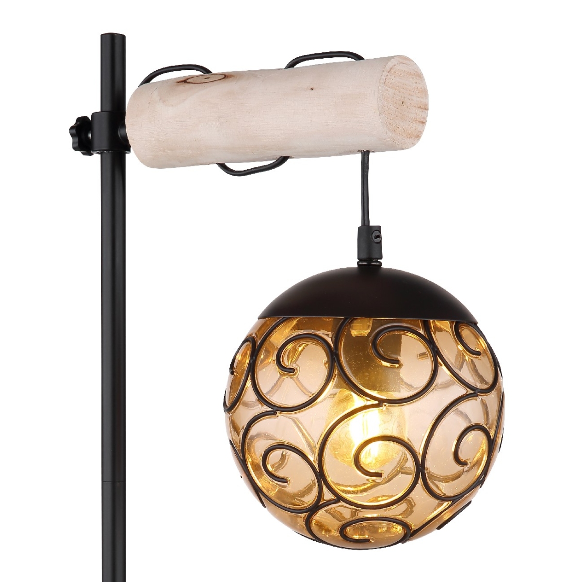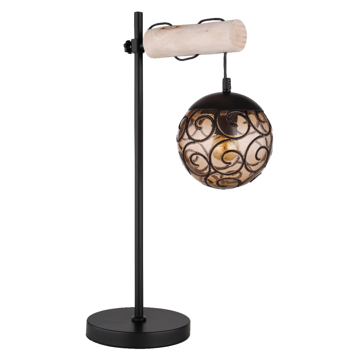 Ova prelepa stona lampa inspiriše sjajnim dizajnom. 55cm dugačka crna mat metalna šipka prodire iz okrugle baze, na kojoj postoji visinski podesiva grana boje zlata. Na ovoj grani visi E27 LED grlo podesive visine preko kog je oblikovani stakleni abažur. Grlo E27 vam pruža mogućnost da se odlučite za laganu boju i jačinu do maksimalnog izlaza od 9 vati.