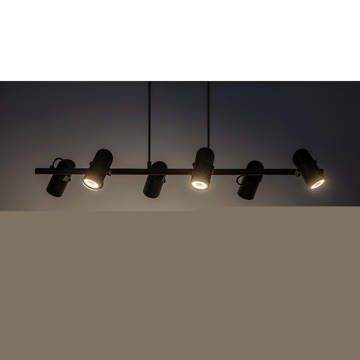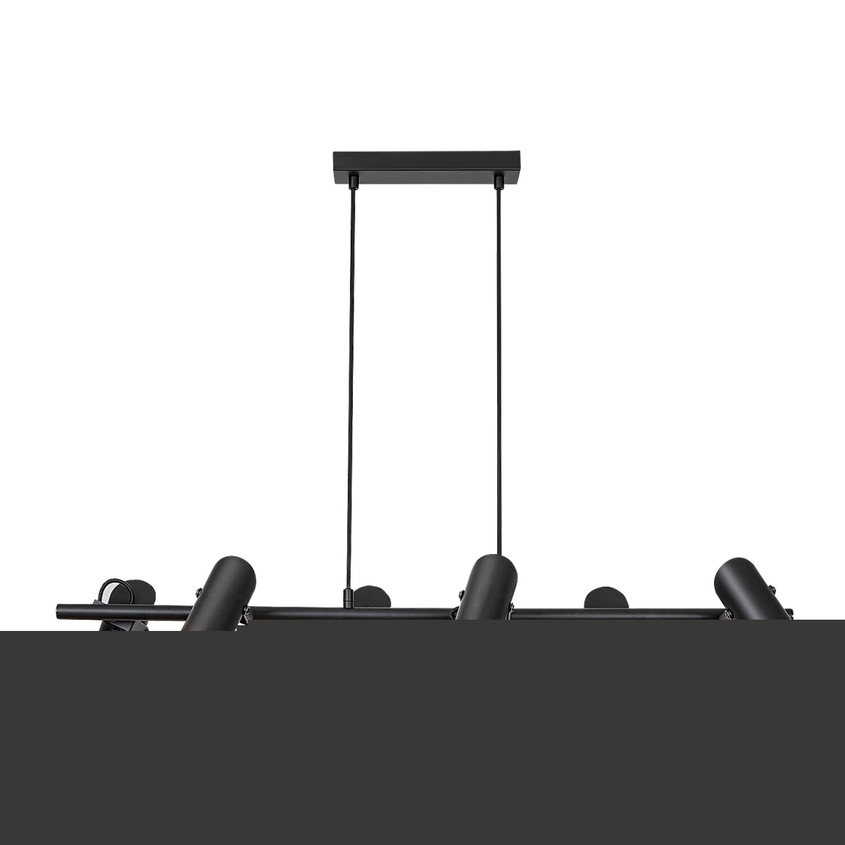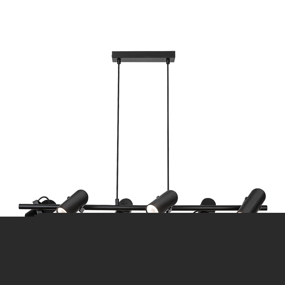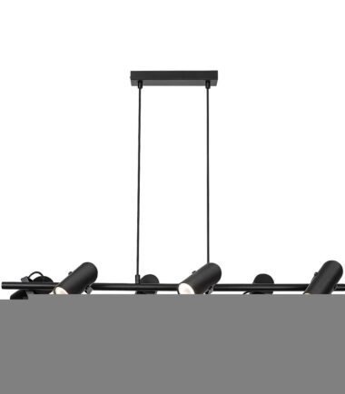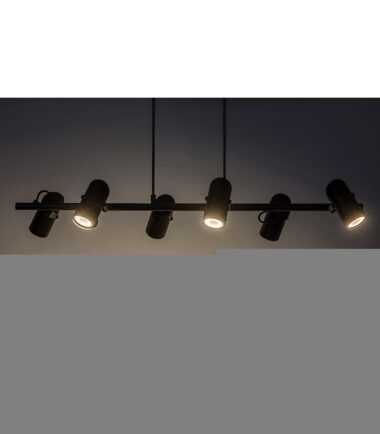 Maksimilijan privezak sa 6 sijalica u industrijskom stilu je odličan izbor za prostraniji moderni dnevni boravak, trpezariju ili spavaću sobu. Mat crni potpuno metalni model upotpunjen je cilindričnim abažurima, a može se pričvrstiti za plafon uz pomoć izdužene pravougaone dekorativne osnove. Fleksibilne glave sijalica su postavljene sa obe strane dugačke horizontalne šipke koja je kablovima pričvršćena za dekorativno postolje, a njihova svetlost se može usmeravati po želji. Lampa se može koristiti sa šest sijalica, svaka snage do 25 V. Tip grla je GU10. Ako Makimilian instalirate u spavaćoj sobi, preporučljivo je da izaberete sijalice koje emituju toplu belu svetlost, dok je za rad pogodnija prirodna ili hladna bela svetlost jer vam pomaže da održite koncentraciju. Dimenzije privezka sa 6 sijalica su sledeće: širina 870 mm, rastojanje od plafona 1.500 mm, prečnik svakog abažura 55 mm, prečnik ugradnje sijalice 230 mm. Makimilian lampa se isporučuje bez izvora svetlosti.