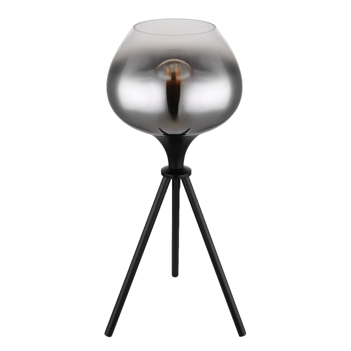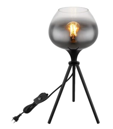 Ova moderna stona lampa inspiriše sjanim dizajnom. Iz stativa dugog 45 cm viri grlo E27 prekriveno staklom u boji dima (Ø 18 cm). Grlo E27 vam omogućava da odredite boju svetla i jačinu do maksimalne snage od 40W. Zbog uštede energije i dugovečnosti preporučujemo LED sijalice.