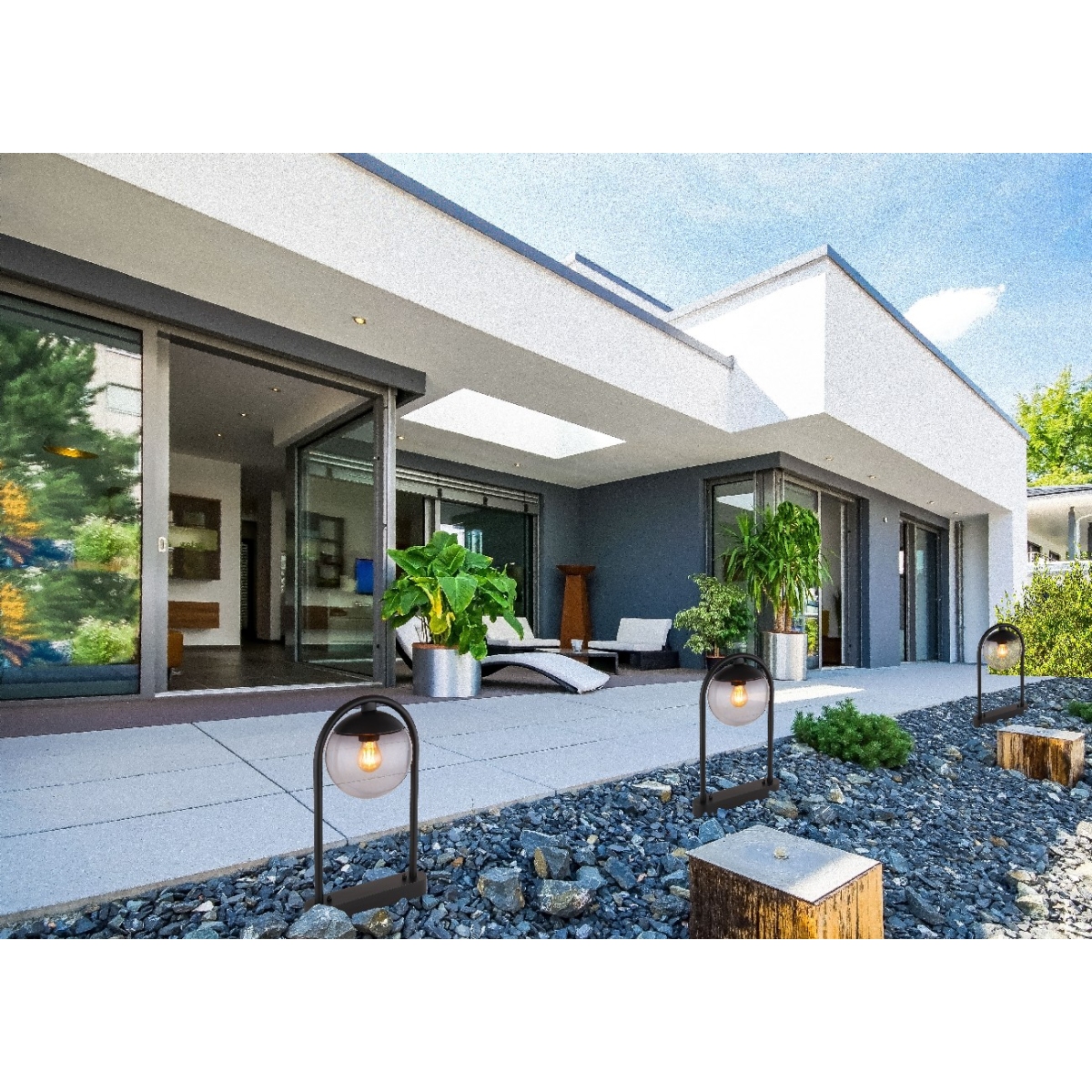 Ova moderna spoljašnja lampa ističe se prelepim jednostavnim dizajnom. Od izdužene osnove, crna mat zakrivljena metalna šipka ide 45 cm u visinu do E27 grla , što vam daje mogućnost da odredite boju svetla i jačinu do maksimalne snage od 40 vati. Zbog dugovečnosti i uštede energije preporučujemo LED sijalice.