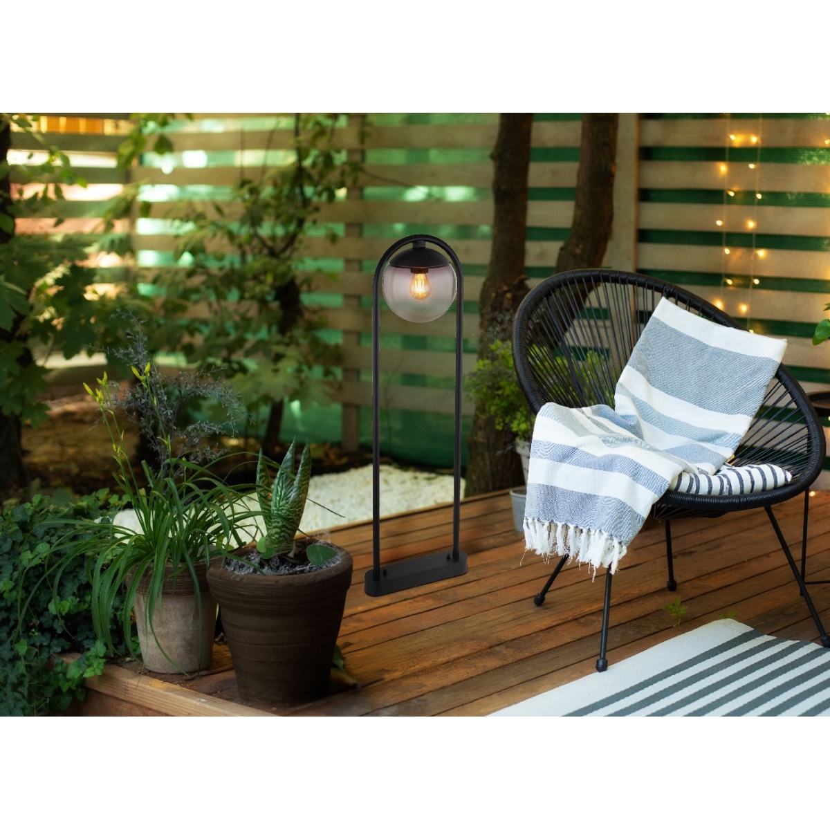 Ova moderna spoljašnja lampa sitiče se prelepim jednostavnim dizajnom. Od izdužene baze, crna mat zakrivljena metalna šipka ide 1 m u visinu do E27 grla, što vam daje mogućnost da odredite boju svetla i jačinu do maksimalne snage od 40 vati. Zbog dugovečnosti i uštede energije preporučujemo LED sijalice.