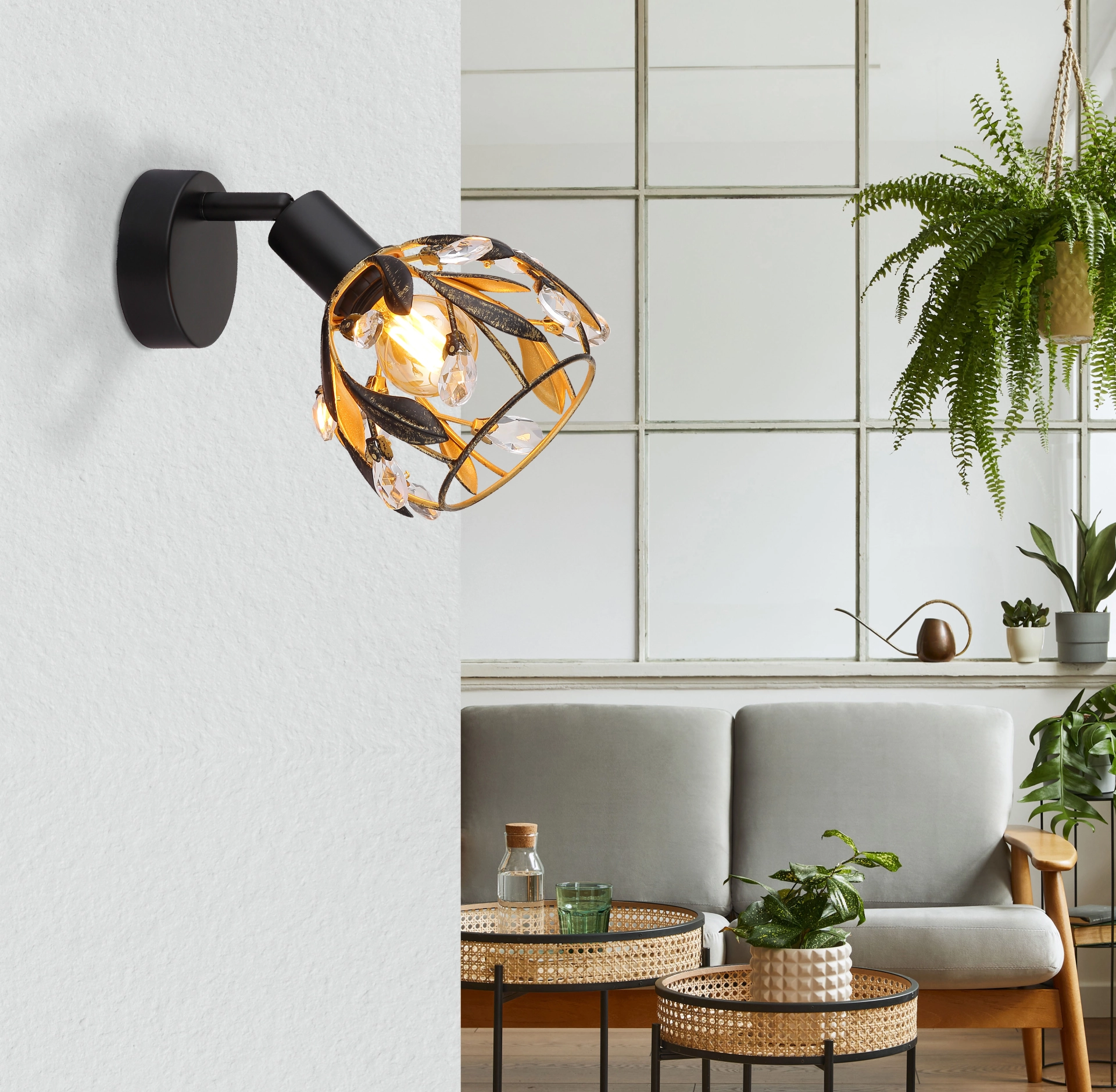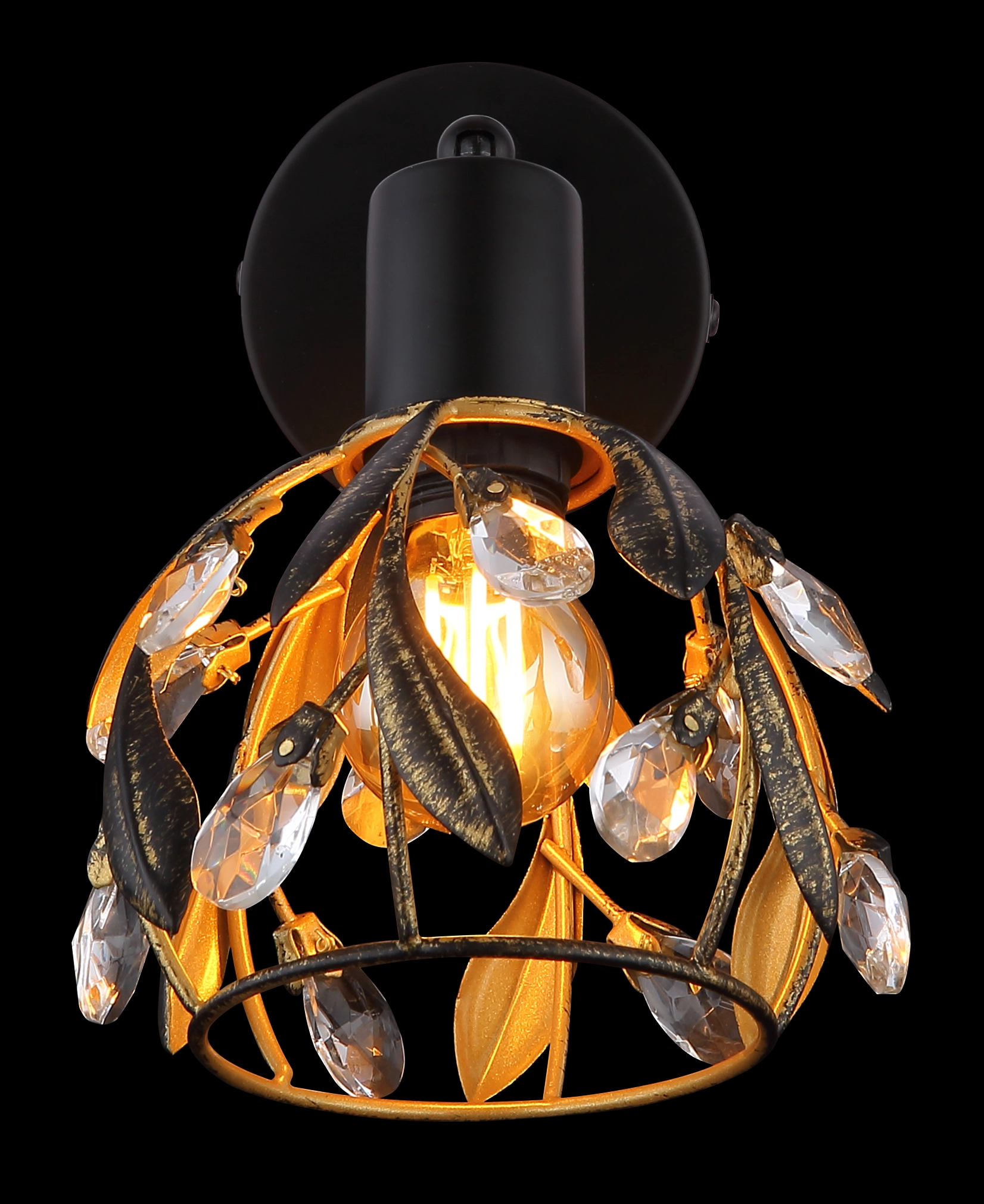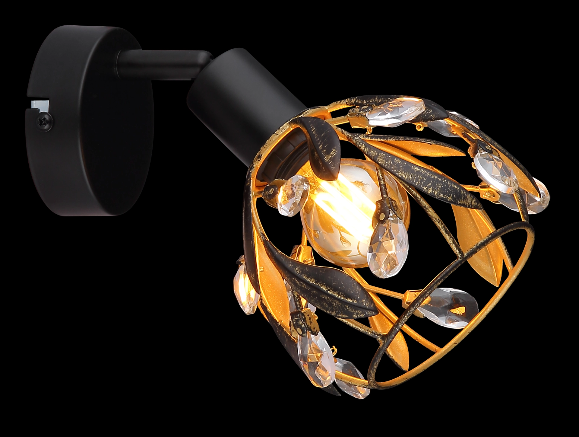 Otkrijte elegantni zidni znak MIKA sa jedinstvenim dizajnom koji nudi harmoničnu mešavinu tradicije i stila. Okrugli abažur je umetnički dizajniran sa dekorativnim listovima i blistavim kristalima. Telo lampe je napravljeno od visokokvalitetnog, crnog, mat metala, dok je abažur završen u atraktivnoj zlatnoj i patiniranoj crnoj boji. Ova kombinacija daje reflektoru poseban dodir i stvara prijatnu atmosferu u svakoj prostoriji. Prozirni akrilni kristali reflektuju svetlost i stvaraju impresivne igre svetlosti. Reflektor je opremljen grlom za sijalicu E14, koja nije uključena, tako da možete podesiti intenzitet svetlosti po svojoj želji. Idealan za klasične i moderne enterijere, ovaj elegantni komad se besprekorno uklapa u vaš dekor i dodaje stilske akcente. Unesite tu posebnost u svoj dom pomoću ovog impresivnog zidnog znaka!
