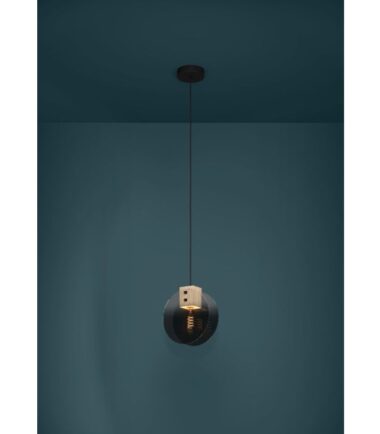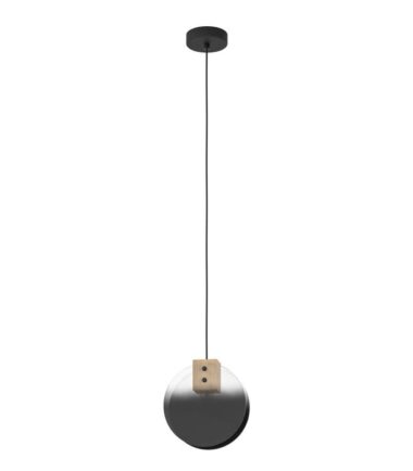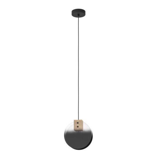 Jednostruki privezak MILLENA prikazuje držač lampe od crnog čelika pozicioniran između dva staklena okna sa ubedljivim gradijentom boja koji bledi od crne do sive do providne. Držač lampe je okačen za okrugli crni metalni baldahin sa crnim tekstilnim kablom. Viseća lampa upotpunjuje moderne stilove enterijera i stvara atraktivno osvetljenje u dnevnoj sobi ili iznad trpezarijskog stola. Proizvod ima držač lampe E27 i zahteva 1 k E27 sijalicu, koja nije uključena.