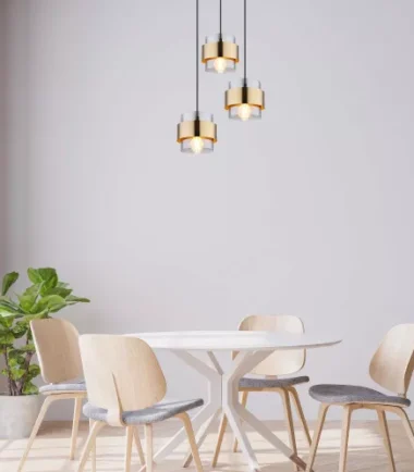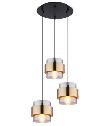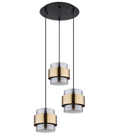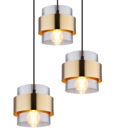 Ova viseća lampa (ø 45 cm) ističe se svojim estetskim dizajnom napravljenim od metala i stakla u boji dima. Sastoji se od okrugle, crne metalne ploče (ø 35 cm) na kojoj vise tri crna kabla. Opremljene su cilindričnim, zadimljenim staklenim abažurima sa mesinganim prstenom (ø 18 cm), koje mogu biti opremljene E27 sijalicama po vašem izboru. To vam pruža mogućnost da pojedinačno odredite boju svetla jačinu. Pored toga, visina lampe može da se podesi i do 120 cm tokom instalacije. Sa ostalim modelima iste serije možete da kreirate elegantan ambijent u svom enterijeru i upotpunite celokupnu sliku.