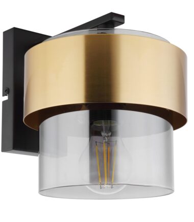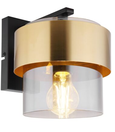 Ova zidna lampa ističe se svojim estetskim dizajnom napravljenim od crno-mat metala i stakla u boji dima. Zidna lampa dužine 21,5 cm sastoji se od pravougaone metalne ploče na kojoj se nalazi ugaona metalna šipka. Za nju je prikačen cilindrični, zadimljeni stakleni abažur sa mesinganim prstenom (ø 18 cm) koji se može opremiti E27 sijalicom po vašem izboru. To vam daje mogućnost da u skladu sa svojim idejama odredite boju svetla i jačinu. Sa više stavki iste serije možete da kreirate elegantnu atmosferu u svom enterijeru i upotpunite celokupnu sliku.