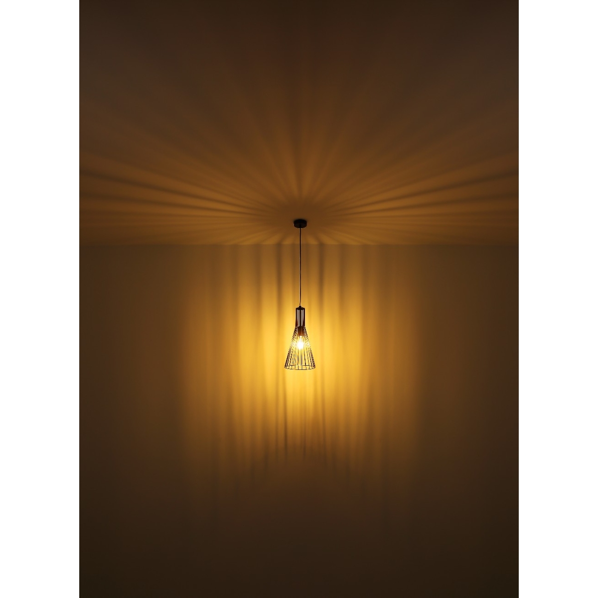 Ova sjajna visilica inspiriše svojim jednostavnim dizajnom. Na kablu dužine 1,2m nalazi se grlo E27, koje vam daje mogućnost da sami odredite osvetljenje, do maksimalne snage od 40 vati. Prelep abažur napravljen od metalnih šipki (Ø20cm) daje lampi moderan izgled.