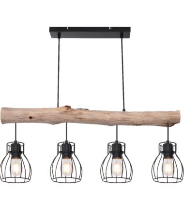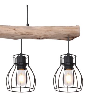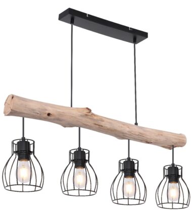 Ova ekstravagantna, moderna visilica od crnog metala, koja fino seče svaku veću prostoriju. Na visećoj drvenoj gredi nalaze se četiri grla E27, koja su okružena mrežastim okruglim abažurima. Slobodnim izborom sijalica (3 x E27/max. 40W), možete sami odrediti intezitet i boju svetlosti. Zbog njihove dugovečnosti preporučujemo LED sijalice. Sa ostalim modelima ove serije, možete dodatno ulepšati sliku vašeg prostora.