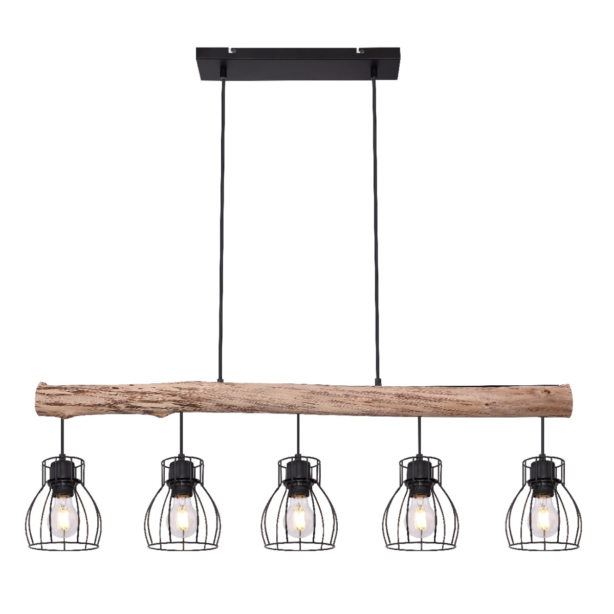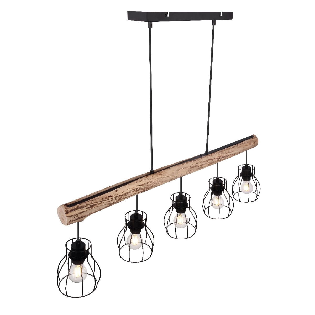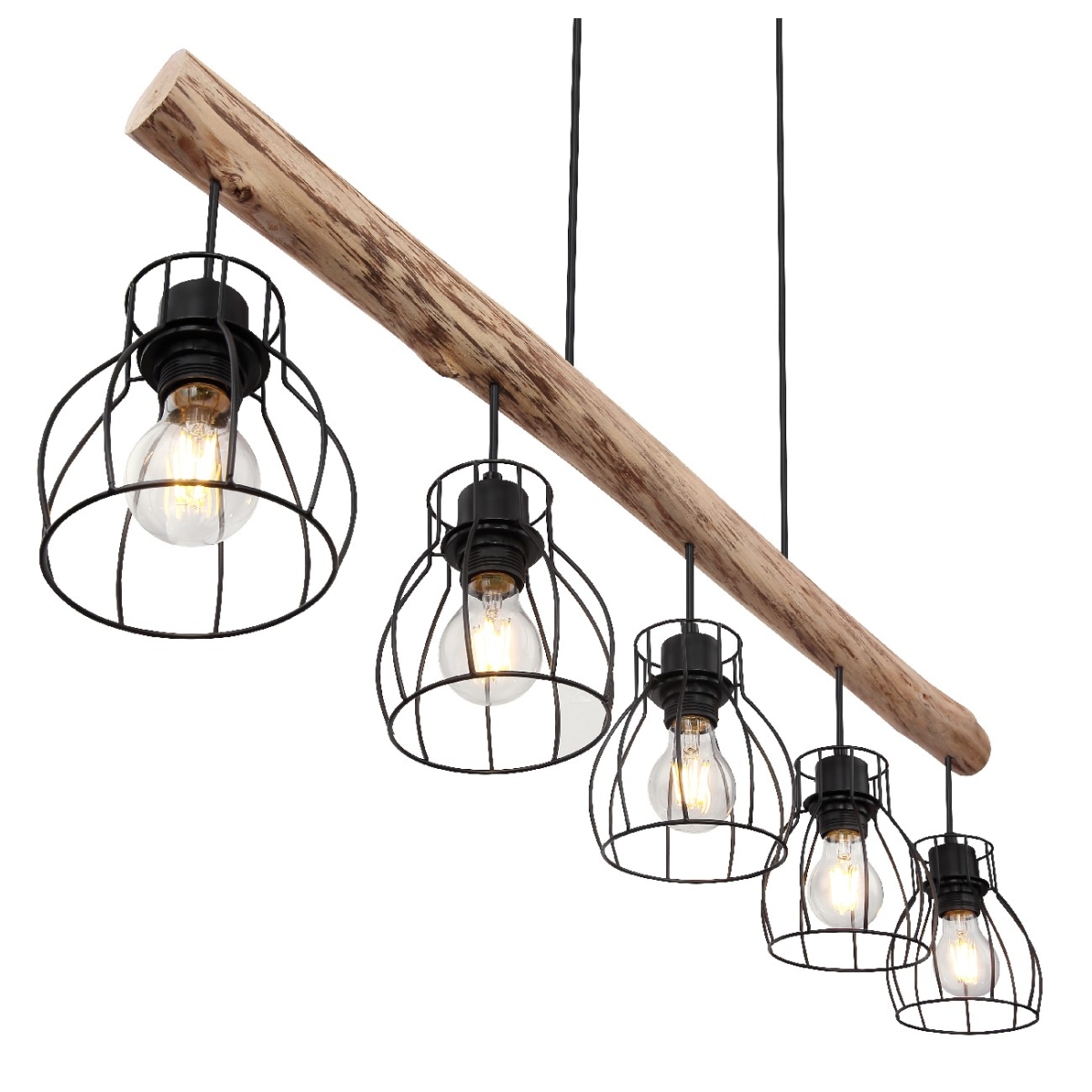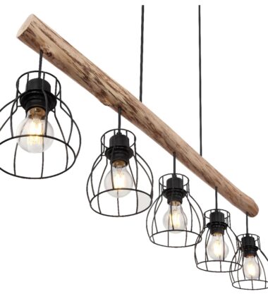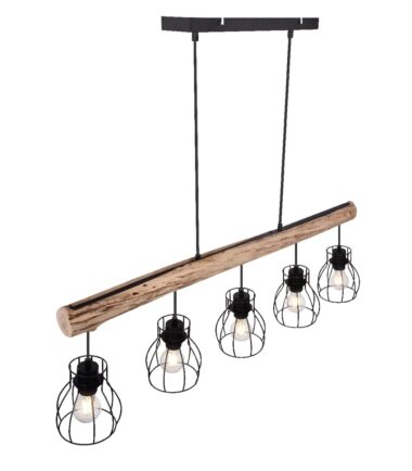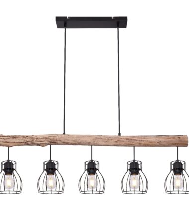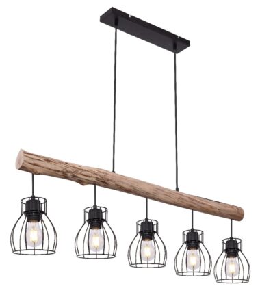 Ova ekstravagantna, moderna visilica od crnog metala, koja fino seče svaku veću prostoriju. Na visećoj drvenoj gredi nalazi se pet grla E27, koja su okružena mrežastim okruglim abažurima. Slobodnim izborom sijalica (3 x E27/max. 40W), možete sami odrediti intezitet i boju svetlosti. Zbog njihove dugovečnosti preporučujemo LED sijalice. Sa ostalim modelima ove serije, možete dodatno ulepšati sliku vašeg prostora.