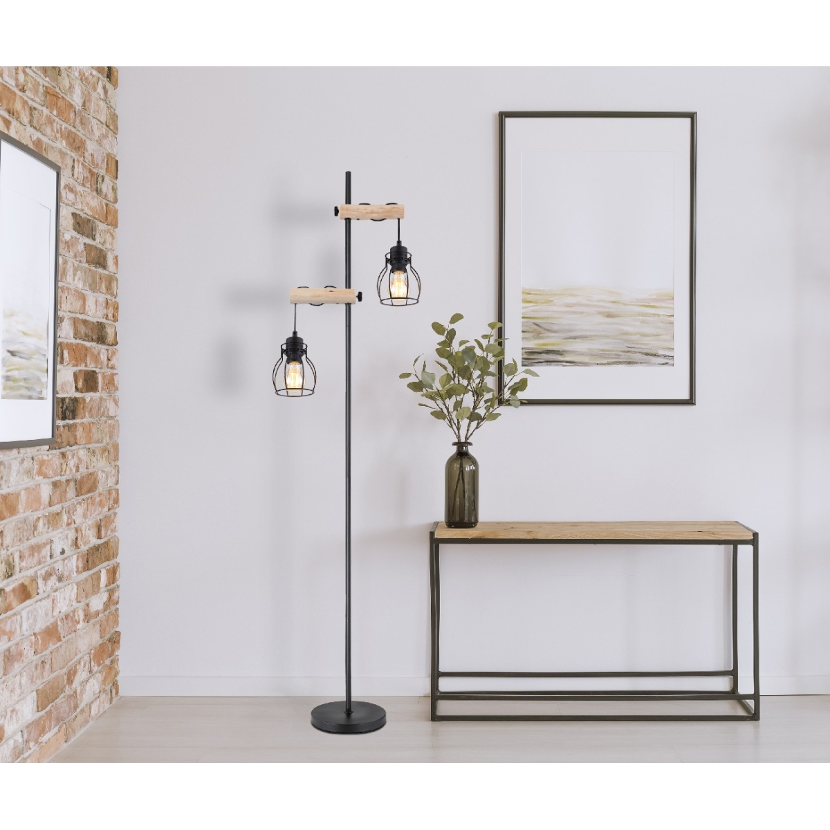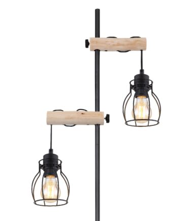 Ova podna lampa iz serije Mina (38,5×23 cm) impresionira svojim rustičnim dizajnom napravljenim od mat crnog metala i drveta. Podna lampa od 150 cm sastoji se od okruglog metalnog postolja na koje je pričvršćena metalna šipka. Opremljena je sa dve drvene šipke, na kojima vise dva metalna abažura sa mrežom, od kojih svaki možete opremiti sijalicom E27 po vašem izboru, što vam daje mogućnost da individualno određujete boju svetlosti i osvetljenost. Sa više artikala iz serije Mina, možete stilski upotpuniti svoj enterijer.