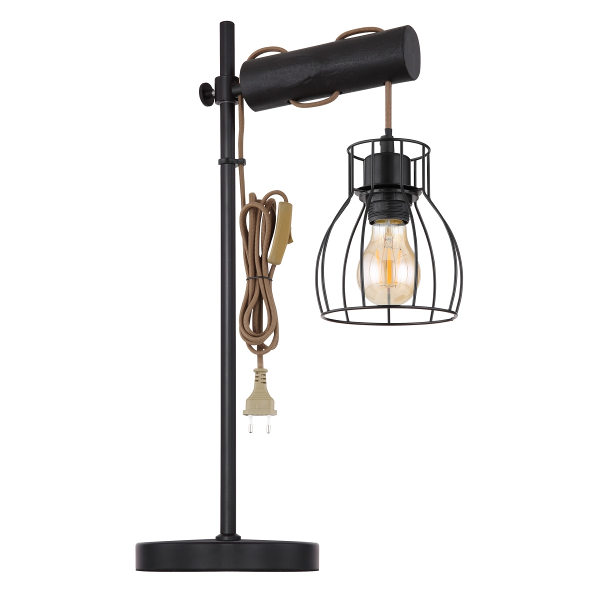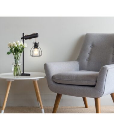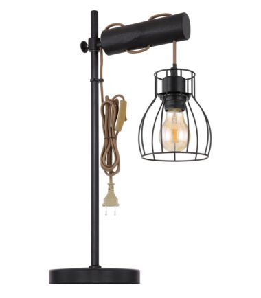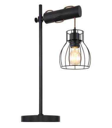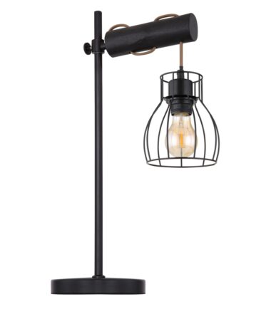 Ova stona lampa iz serije MINA je elegantan dodatak vašem enterijeru. Stona lampa dužine 55 cm sastoji se od okrugle metalne podloge na koju je fiksirana crna metalna šipka. Ima horizontalno fiksiran cilindar sa otvorom, koji je ukršten braon kablom, koji je obezbeđen crnim metalnim abažurom. On može biti opremljen E27 sijalicom po vašem izboru, što vam pruža mogućnost da pojedinačno odredite boju svetla i jačinu. Sa ostalim modelima iste serije možete upotpuniti celokupnu sliku u svoja četiri zida.