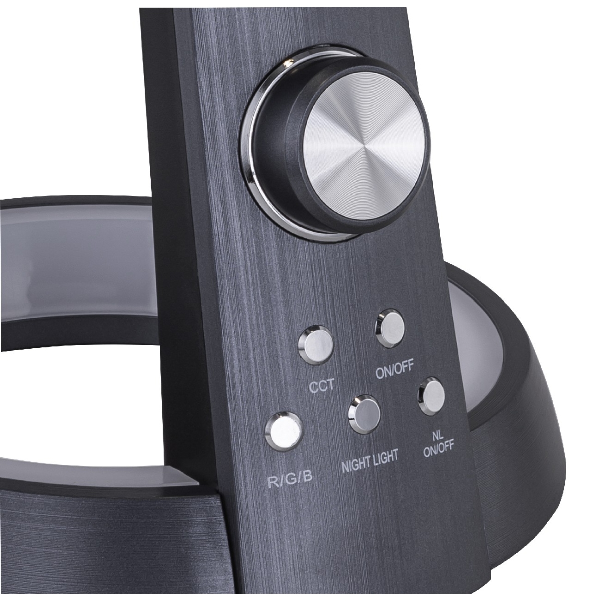 Stona lampa MITTI napravljena od crne plastike je model za mlade i stare. Visokokvalitetna izrada, opremljena flekso granom, menjačem boja, funkcijom dodira i mogućnošću popravljanja boja, ima 8W LED sijalicu, ova prigušena stona lampa obezbeđuje maksimalno 450 lumena jakog svetla laganim intenzitetom toplog belog 3000 Kelvina, neutralnog belog 4300 Kelvina ili hladnog 6300 Kelvina. Svetlosna boja se može podesiti ili popraviti na različite načine. Posebna karakteristika ove stone lampe je baza, koja može da sija u različitim bojama kroz integrisanu 2 vata LED RGB sijalicu. Tako se ova stona lampa može odlično koristiti i kao noćno svetlo.