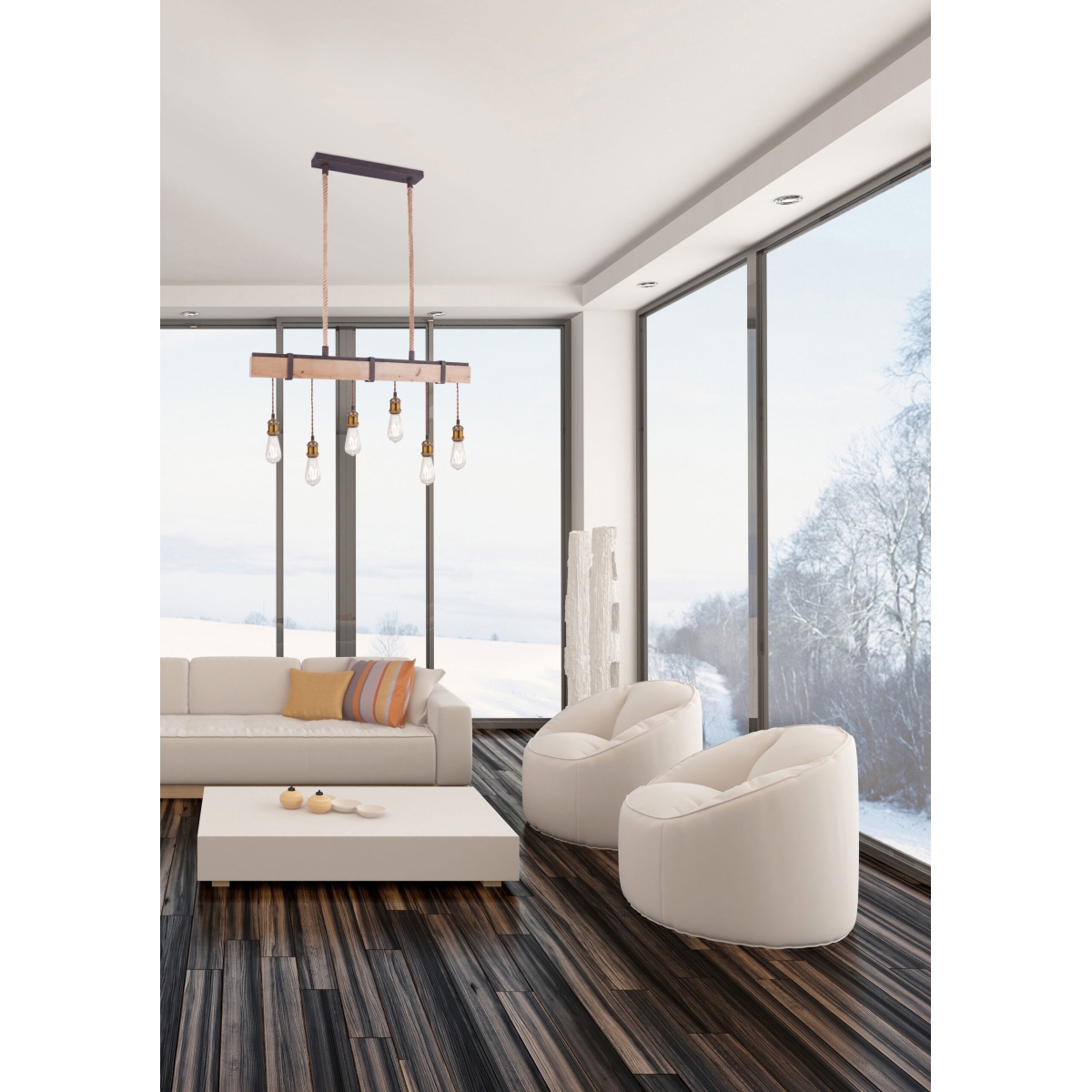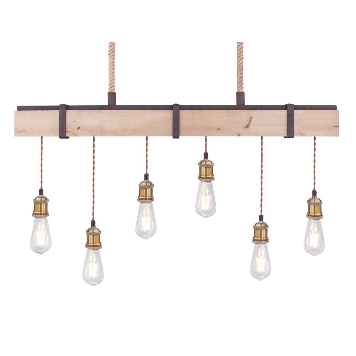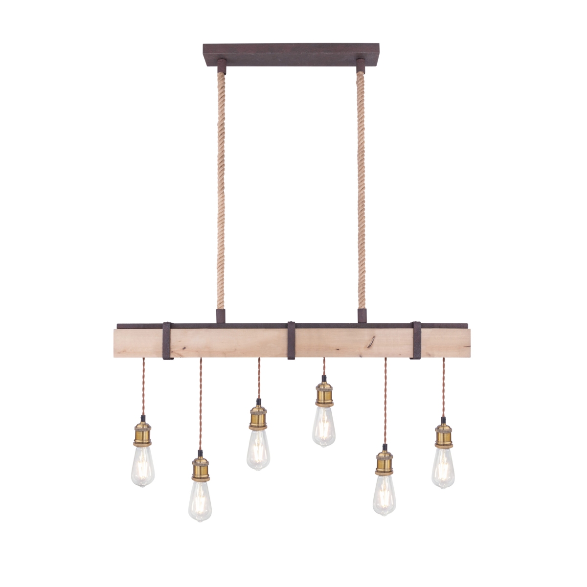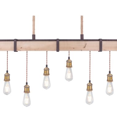 Visilica MUCHA se posebno ističe. Sa jedne strane metalom u boji rđe, u kombinaciji sa prirodnim drvetom, sa druge strane slobodnim visećim sijalicama bez abažura. 6 sijalica visi na gredi i prodiru do 100 cm u sobu. Grlo E27 omogućava slobodan izbor sijalica do 60 vati. Zbog njihove uštede energije i dugovečnosti preporučujemo LED sijalice.