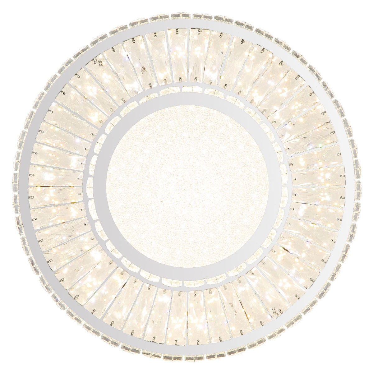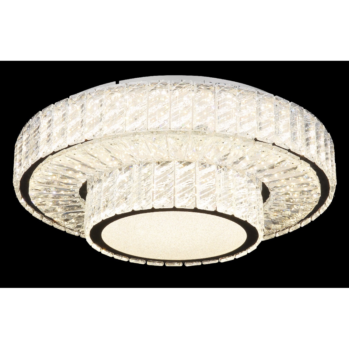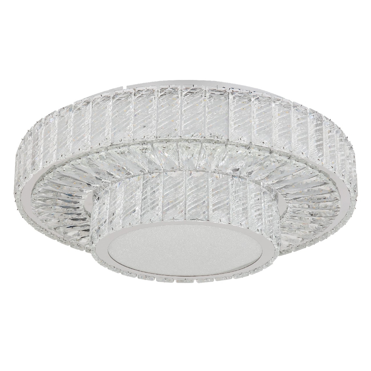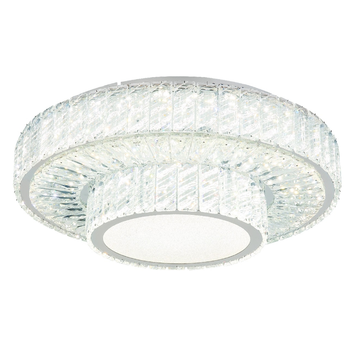 Doživite glamur i eleganciju sa MUCKY plafonskom lampom! Naša plafonska lampa sa hromiranim metalnim i jasnim K5 kristalima stvara zadivljujuću igru svetlosti u vašoj sobi. Hromirani prsten dodaje malo sofisticiranosti lampi. Pomoću funkcije dimovanja, koja se može kontrolisati na više nivoa putem prekidača za zid, imate potpunu kontrolu nad intenzitetom svetlosti. Boje se mogu fiksirati po vašem ukusu, a ugrađena funkcija memorije vam omogućava da zadržite željene postavke. Pored toga, MUCKY plafonska lampa nudi noćno svetlo i dolazi sa daljinskim upravljačem. Baterija (2x AAA) je već uključena. Sa prečnikom od 500 mm i visinom od 173 mm, MUCKY plafonska lampa postaje blistavo žarište u svakoj prostoriji. Lampa dolazi sa energetski efikasnom LED sijalicom koja nudi 50W snagu, 230V napon, 672-5520lm svetleći fluks (izvor) i 633-3965lm svetleće efikasnosti (izlaz) kao i podesivu temperaturu boje od 2700-6000K (CCT).