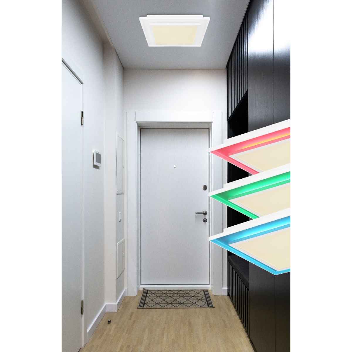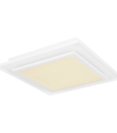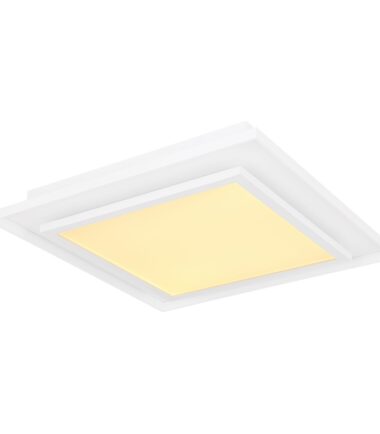 Ova bela kvadratna plafonska lampa (45x45cm) MARPHY serije ubeđuje prelepim dizajnom i mnogim funkcijama. Opremljena LED sijalicom, sija 2700 Kelvina toplo belo do 6500 Kelvin hladno bele svetlosti i ima funkciju memorije. Pomoću daljinskog upravljača možete da prigušite, promenite ili fiksirate svetlo, a takođe koristite boje crvene, zelene i plave.