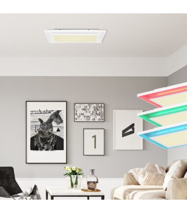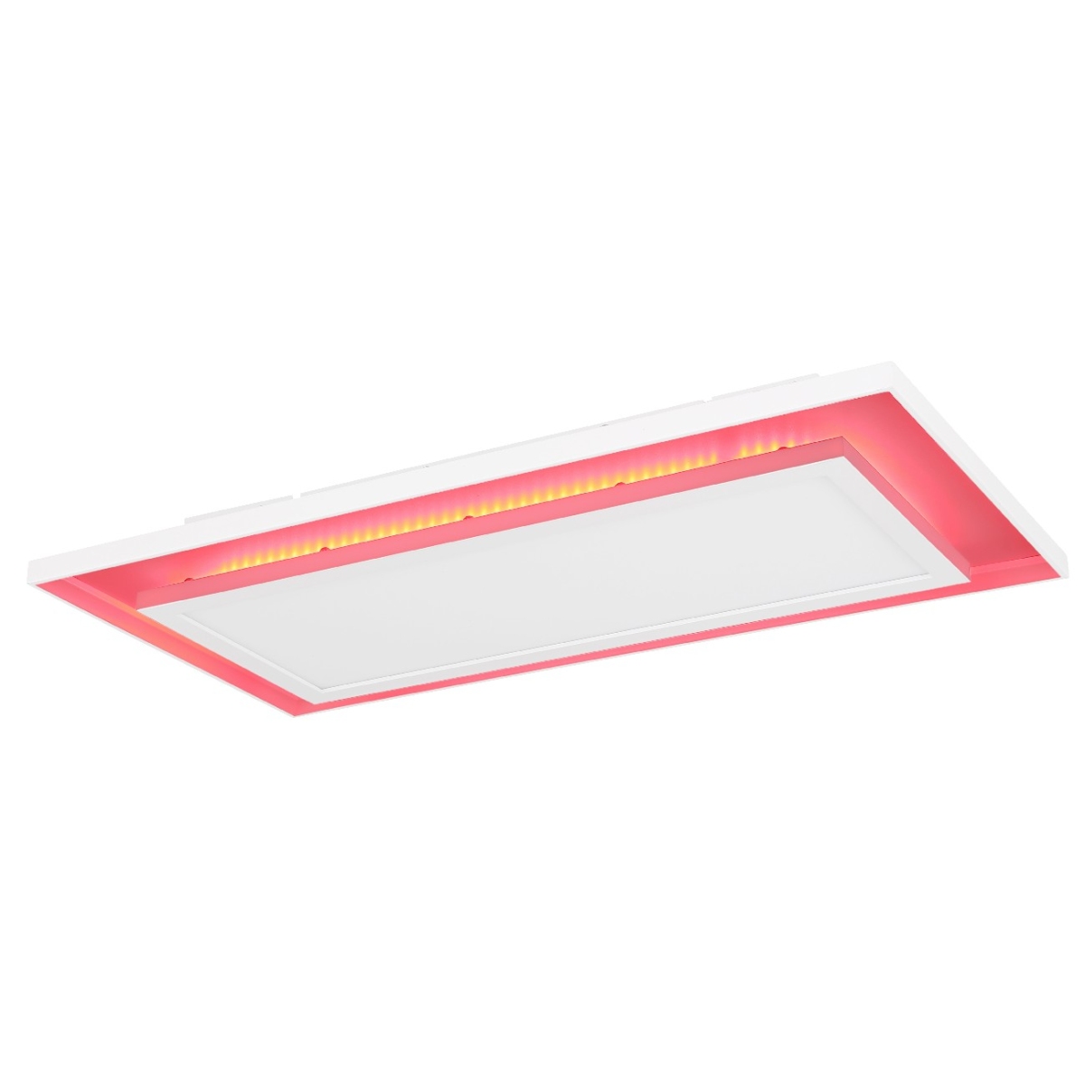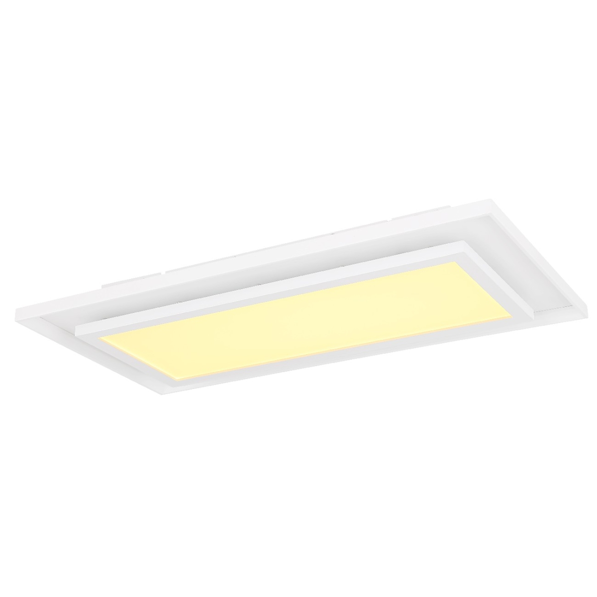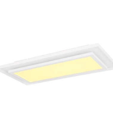 Ova bela pravougaona plafonska lampa (55x29cm) MARPHY serije ubeđuje prelepim dizajnom i mnogim funkcijama. Opremljena LED sijalicom, sija 2700 Kelvina toplo belo do 6500 Kelvina hladno bele svetlosti i ima funkciju memorije. Pomoću daljinskog upravljača možete da prigušite i promenite i fiksirate svetlo, a takođe koristite boje crvene, zelene i plave.