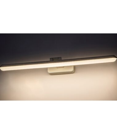 Nabil svetlo za slike modernog stila nudi praktično rešenje za osvetljavanje vaših dragih slika ili omiljenih porodičnih fotografija u dnevnoj sobi. Ovaj model karakteriše prikladan uzdržan dizajn i slike gotovo ožive u njegovom svetlu. Mat bela plastična Nabil zidna lampa je dopunjena belim akrilnim abažurom i može se pričvrstiti na zid uz pomoć mat bele, duguljaste dekorativne osnove sa zaobljenim uglovima. Ovaj model ima ugrađen LED izvor svetlosti energetske klase G snage 15W, svetlosnog toka od 1.100 lumena sa senkom i 1.750 lumena bez senke, i životnog veka od 30.000 sati. Lampa zrači prirodno belo svetlo i ima temperaturu boje od 4.000 K. Nabil ima sledeće dimenzije: širina 610 mm, visina 60 mm, rastojanje od zida 160 mm, dubina ugradnje 150 mm. Najvažnija stvar koju morate uzeti u obzir kada birate veličinu vašeg svetla za sliku je da ono treba da bude pogodno da osvetli celu sliku bez ikakvih zasenčenih delova.