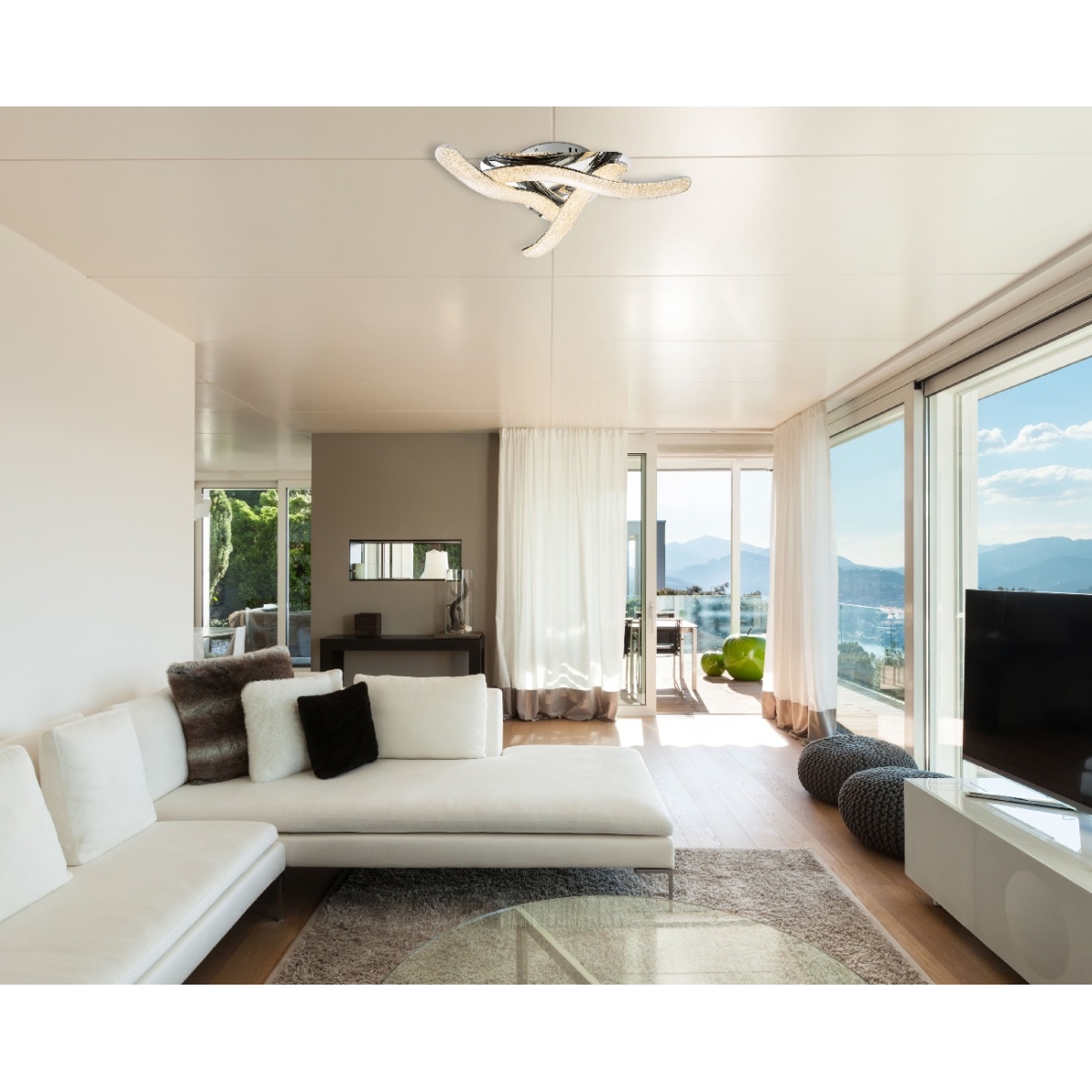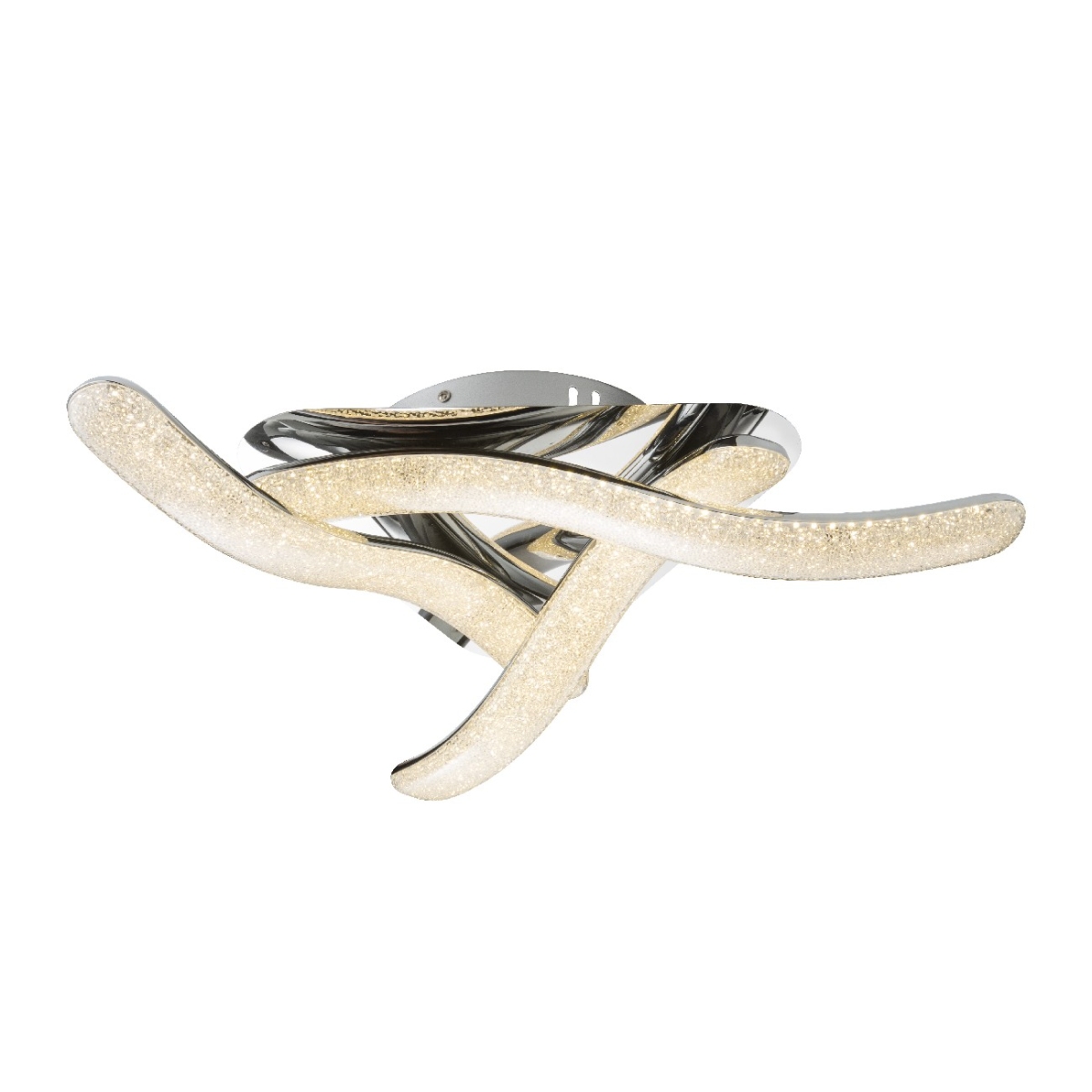 Ova plafonska lampa dužine 54 cm, iz NABRO serije, postavlja glamurozan akcenat u manjim prostorijama. Osnova ove lampe je boji hroma, a zakrivljene, hromirane svetlosne grane, napravljene od akrila, ukrašene su svetlucavim akrilnim kristalima. Standardni LED, do 36 vati, osigurava pravu jačinu, svetlosna boja od 3500K doživljava se kao prijatna toplo bela boja i svetlosni intenzitet od 2834 lumena je savršeno uskađen. Ovaj artikl se takođe može veoma dobro kombinovati sa drugim proizvodima iz iste serije.