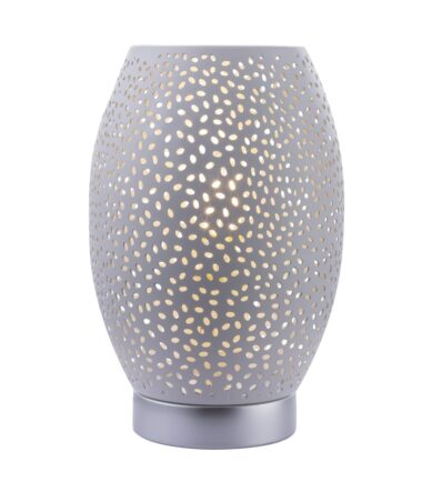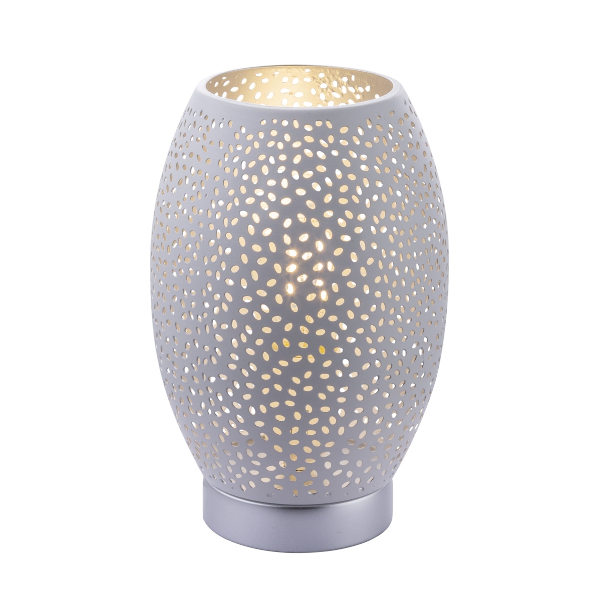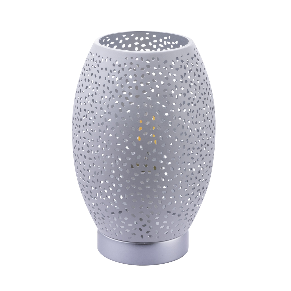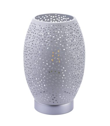 Jednostavno oduzima dah! Stona lampa NARRI impresionira elegancijom i stilskim dizajnom u srebrnoj i beloj boji. Sa postoljem usklađenim u boji, ova lampa ima visinu od 23 cm, prekidač za uključivanje/isključivanje. Ima E27 grlo, koja može biti opremljeno bilo kojom sijalicom (max. 40W). LED sijalice su posebno pogodne za upotrebu u otvorenim svetiljkama bez stvaranja odsjaja. Ušteda energije i dugovečnost su još jedan pozitivan efekat i samim tim dobro raspoloženje je zagarantovano.