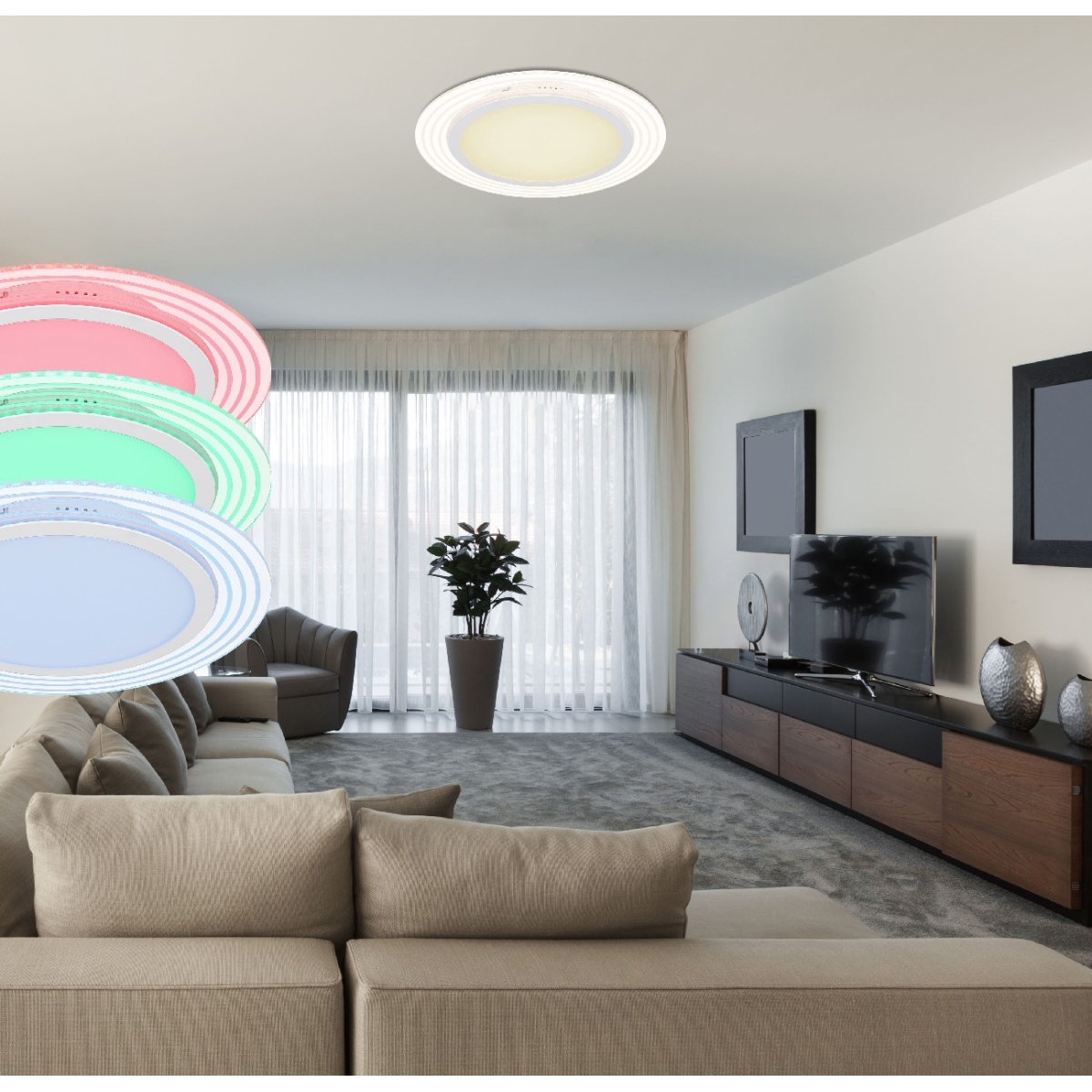 Ova plafonska lampa serije NATHALIE adut je sa svojim funkcijama i postaje centar vaših soba. Sastoji se od nekoliko prstenova na okruglim abažurima i LED panela u sredini, svetiljka pravi prelepu celokupnu sliku. Uz pomoć obezbeđenog daljinskog upravljača, ne samo da možete da prigušite svetlo, već i pojedinačno podesite boju svetla u nekoliko koraka između 2700 Kelvina (topla bela) i 6500 Kelvina (hladno bela) i takođe ima funkciju memorije. Osim toga, ova plafonska lampa je opremljena funkcijom noćnog svetla i promenom boje u RGB-u.