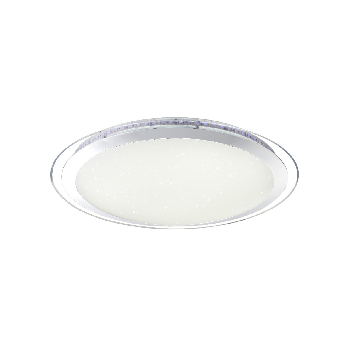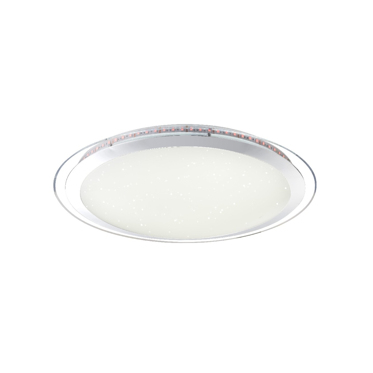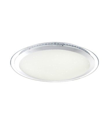 Ova nesvakidašnja okrugla plafonska lampa u hromu, serija NICOLE, impresionira svojim mnogobrojnim funkcijama. Ovaj model ima daljinski upravljač, koji omogućava mnoge funkcije kao što su menjanje i fiksiranje boja. Abažur diskretnog izgleda ima prečnik od 55 cm i ima dekoraciju od šljokica, što pokreće zvezdani efekat. Ovo prigušeno svetlo na plafonu obezbeđuje najviše 3300 lumena jake svetlosti.