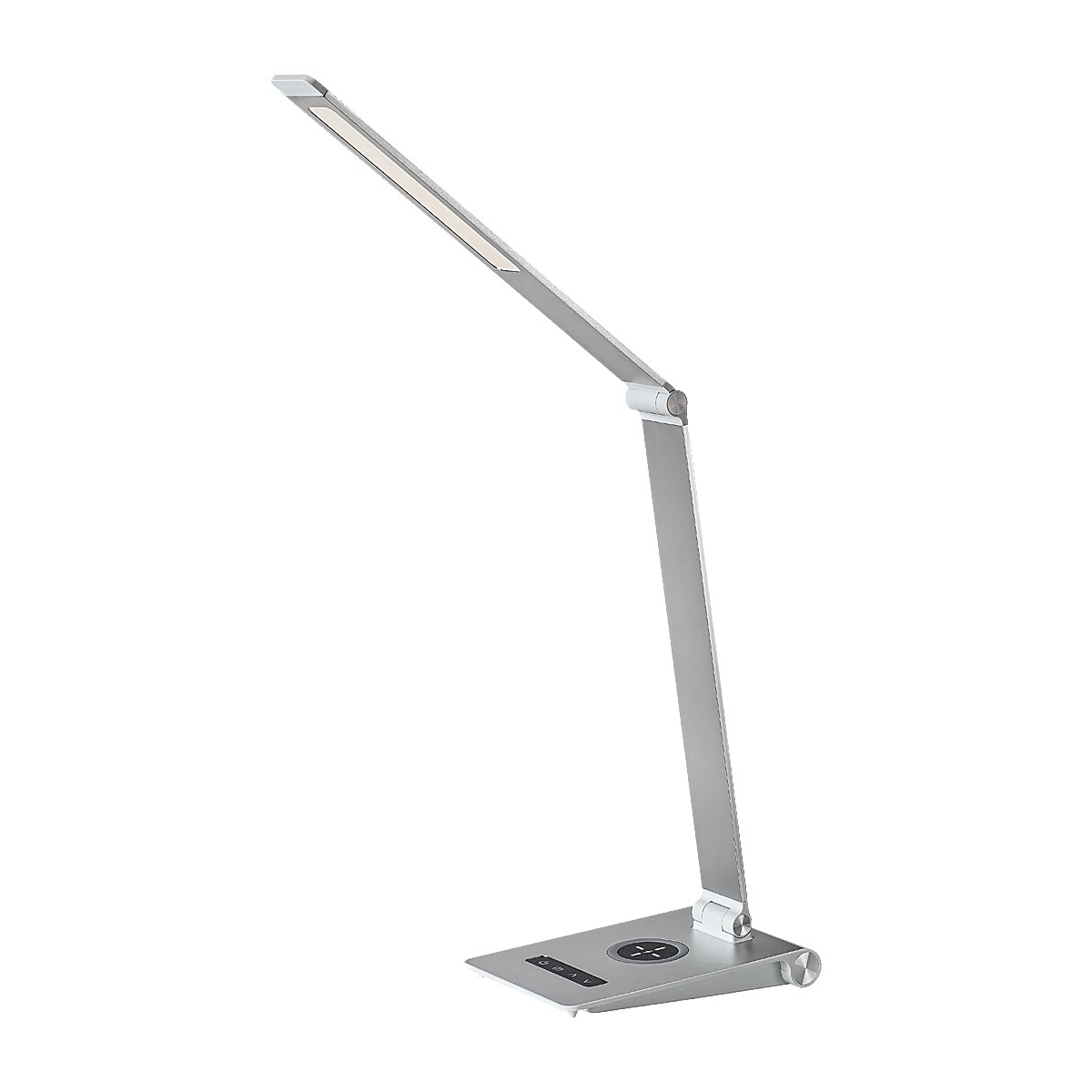 Jednostavan dizajn NILIFGARD stone lampe u minimalističkom stilu kombinovan je sa nekoliko dodatnih karakteristika, što je čini praktičnim izborom u svakoj modernoj studiji. Aluminijumsko učvršćenje srebrne boje upotpunjeno je belim plastičnim abažurom, a lampu podržava kvadratna dekorativna baza na kojoj se nalaze i prekidači na dodir. Zahvaljujući fleksibilnoj ruci, ugao snopa se može podesiti prema vašim potrebama. NILIFGARD ima ugrađeni LED izvor svetlosti snage 13W, svetlosnog toka od 890 lumena i životnog veka od 20.000 sati. Temperatura boje može da se podesi u tri koraka između 2800–5000K, tj. lampa može da emituje toplu, prirodnu ili hladno belu svetlost. Osvetljenost se može podesiti u pet koraka – slično kao i temperatura boje – pomoću prekidača na dodir. Dodatna funkcija je memorijska funkcija. Širina ove stone lampe je 135 mm, visina 430 mm, dužina kabla 1.600° mm. NILIFGARD takođe ima bežični punjač i ugrađeni USB punjač.