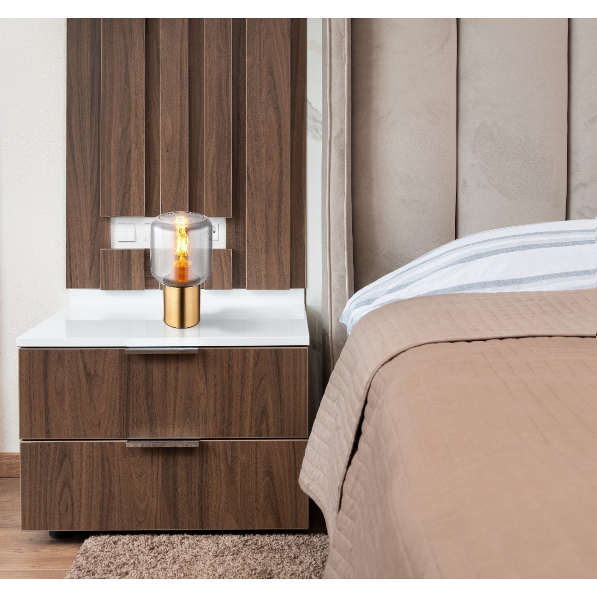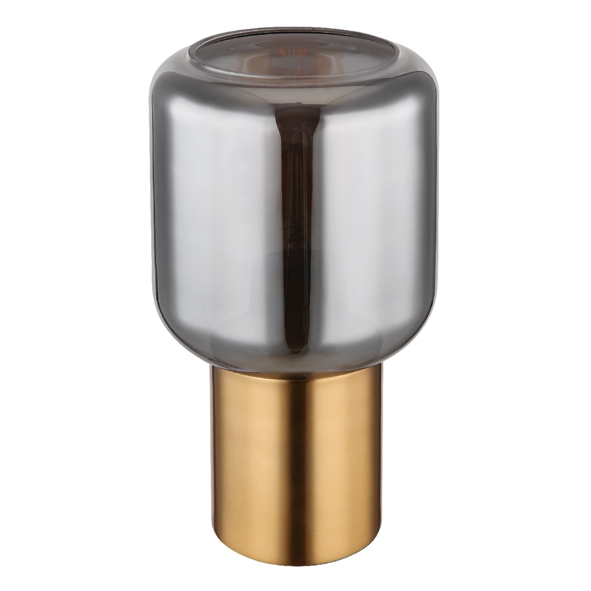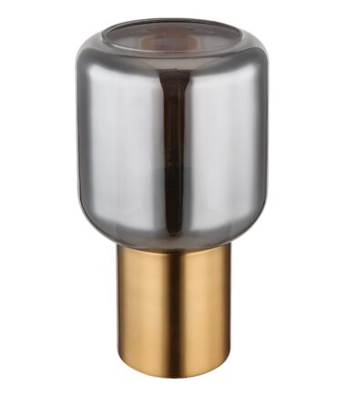 Ova prelepa stona lampa inspiriše sjajnim dizajnom. Iz okruglog postolja boje mesinga viri grlo E27 sa staklenim abažurom u boji dina (Ø 13 cm). Grlo E27 vam omogućava da odredite boju svetla i jačinu do maksimalne snage od 40W. Zbod uštede energije i dugovečnosti preporučujemo LED sijalice.