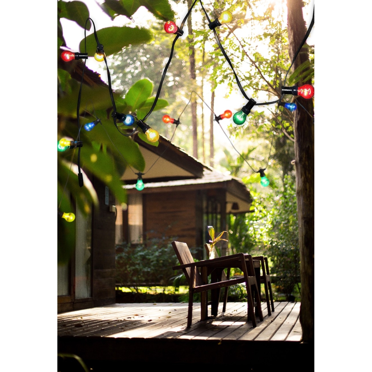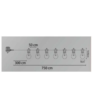 Ovaj niz svetala iz serije NIRVANA pruža raznobojno osvetljenje i sjajnu atmosferu. 10 lampi od obojenog stakla pričvršćeno je za crni lanac dužine 450 cm na razdaljini od po 50 cm. Zbog IP44 ocene, ovaj proizvod je savršen za korišćenje na otvorenom.