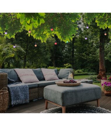 Ovaj niz svetala iz serije NIRVANA pruža raznobojno osvetljenje i sjajnu atmosferu. 20 šarenih sijalica od opalne plastike pričvršćene su na crni lanac dužine 1250 cm, u razmaku od po 50 cm. Zbog IP44 ocene, ovaj proizvod je savršen za korišćenje na otvorenom. Ulepšajte svoj dnevni boravak drugim proizvodima ove serije.