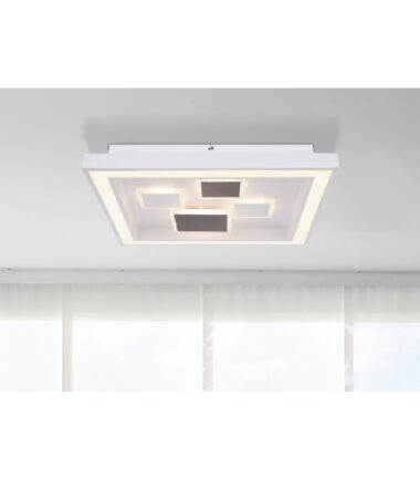 Sa ovom modernom LED plafonskom lampom NOLO serije (48 x 48 cm) uvodite haj-tek u svoja četiri zida. Opremljena je funkcijom memorije, menjačem boja i daljinskim upravljačem. Vrhunac je, međutim, smart home funkcija, lampa je kompatibilna sa Smart Home i Alexa i može se upravljati glasovnim unosom. Osim toga, lampa ima 48 vati i LED panel sa radnim vekom od 20.000 sati. Ova Smartlight lampa je jednostavna za rad pomoću Tuya Smart aplikacije (Android TM/IOS). Ova plafonska lampa je dimabilna i omogućava da se njena svetlosna boja podesi daljinskim upravljačem (3000K-6000K).