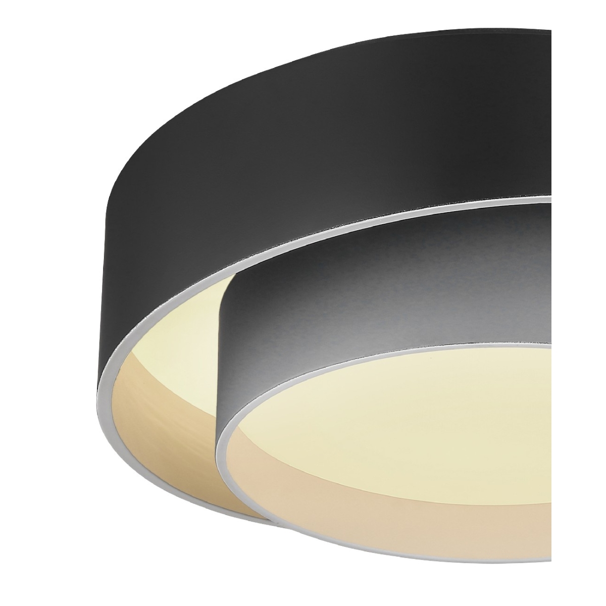 Ova moderna plafonska lampa serije NORBERT inspiriše svojim funkcijama. Ova okrugla dvospratna plafonska lampa (Ø40cm) napravljena od metala i akrila ima visinu od 14cm sa spoljašnjim bojama crne i grafitne. Uz pomoć obezbeđenog daljinskog upravljača, možete fiksirati i prigušiti svetlo u bojama 2700 Kelvina topla bela do 6000 Kelvina hladno bela. Toplo svetlo u ulaznom delu ili jaka svetlost u kancelariji. Osim toga, ova plafonska lampa ima funkciju noćnog svetla koja emituje prijatno svetlo i funkciju memorije.