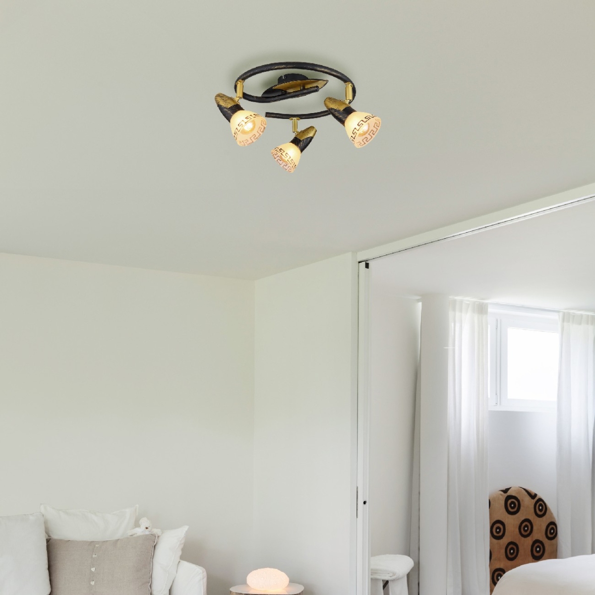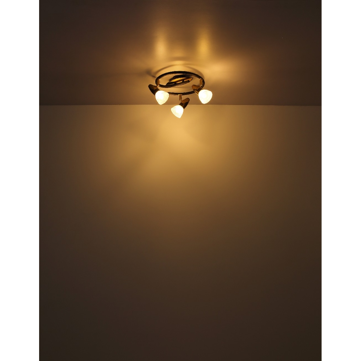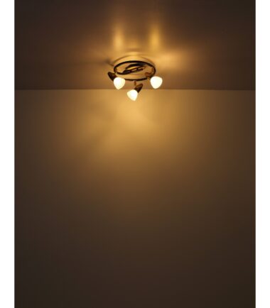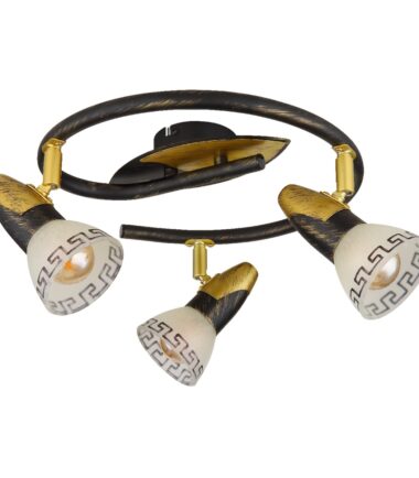 Ovaj reflektor sa tri plamena iz serije NOVARAa može se koristiti veoma dobro kao i dodatno osvetljenje u hodniku ili spavaćoj sobi. Pored toga, lampu možete jako dobro kombinovati i sa drugim artiklima serije Novara. Možete je postaviti kao plafonsku lampu ili kao zidnu lampu. Tri spota su pokretna i pričvršćena su na šinu u obliku slova e 30cm. Metalna lampa ima zlatne detalje i na abažurima je šara. Lampa ima tri E17 R50 grla, tako da imate mogućnost da lampu opremite odgovarajućom sijalicom do maksimalnih 40 vati. Preporučujemo LED sijalice zbog njihove uštede energije i trajnosti.