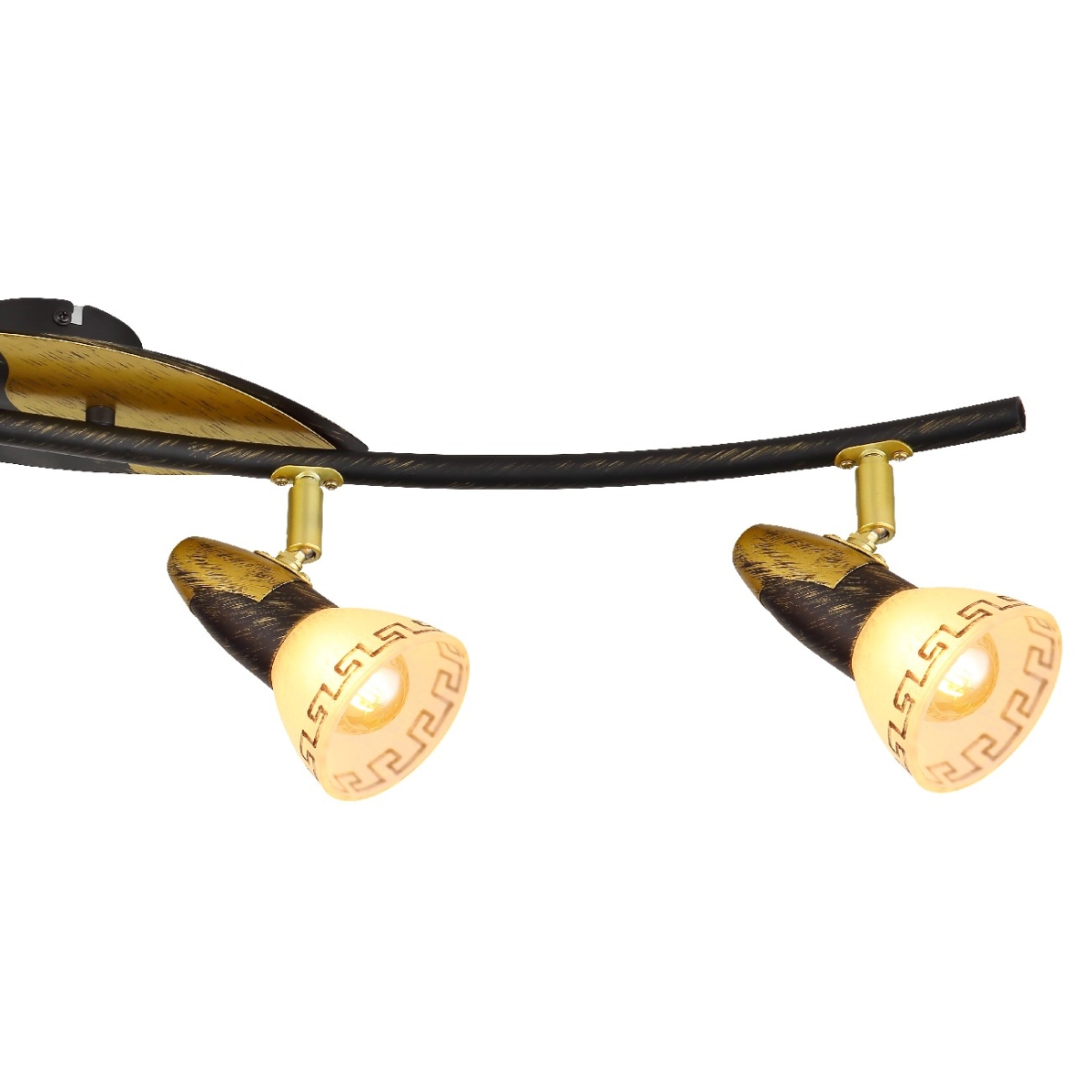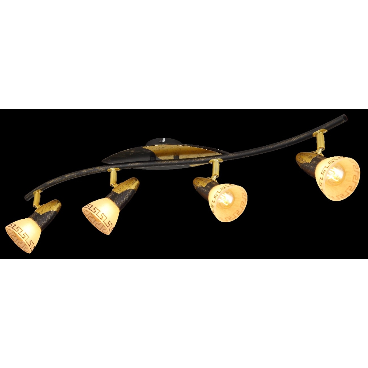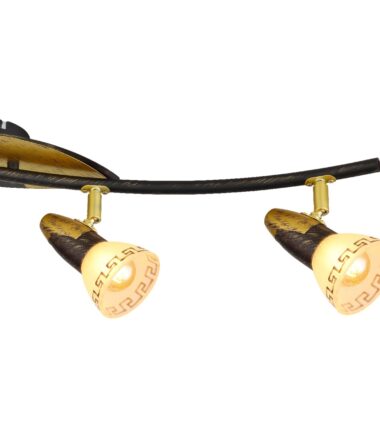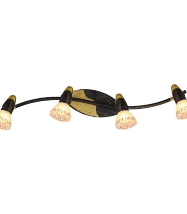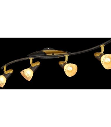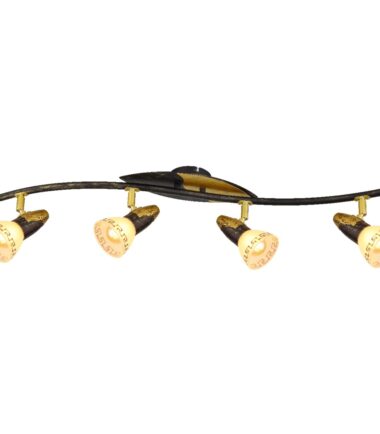 Ovaj reflektor sa četiri grla iz serije NOVARA može se koristiti veoma dobro kao dodatno osvetljenje u hodniku ili spavaćoj sobi. Pored toga, lampu možete jako dobro kombinovati i sa drugim artiklima serije Novara. Grla su pričvršćena za 83 cm dugačku, zakrivljenu šinu. Metalna lampa ima zlatne detalje i na abažurima je šara. Lampa ima četiri E17 R50 grla, tako da imate mogućnost da opremite lampu odgovarajućom sijalicom do maksimalnih 40 vati. Preporučujemo LED sijalice zbog njihove uštede energije i trajnosti.