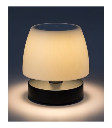 Spoljna stolna lampa Odera modernog stila odličan je izbor kada imate lepu večeru ili letnji večernji razgovor na terasima. Ovaj crni model ima beli abažur nalik kišobranu i robusnu okruglu ukrasnu osnovu, a u potpunosti je napravljen od plastike. Odera ima ugrađen LED izvor svetlosti snage 3 V, svetlosnog fluksa od 140 lumena sa senkom i 360 lumena bez senke i temperaturom boje od 3.000 K. Sijalica koja emituje toplo belo svetlo ima životni vek od 25.000 sati. Lampa se može zatamniti u 3 koraka, odnosno njena osvetljenost se može podesiti pomoću prekidača na dodir. Baterija ima napon od 3,7 V i kapacitet od 2.000 mAh. Ovaj model koji se može puniti preko USB kabla ima sledeće dimenzije: visina 160 mm, prečnik 150 mm, prečnik ugradnje 125 mm. USB kabl je dužine 500 mm, vreme punjenja je 7 sati. IP44 zaštita spoljne lampe Odera obezbeđuje da je zaštićena od prodora predmeta prečnika do 1 mm i od prskanja vode iz bilo kog smera.