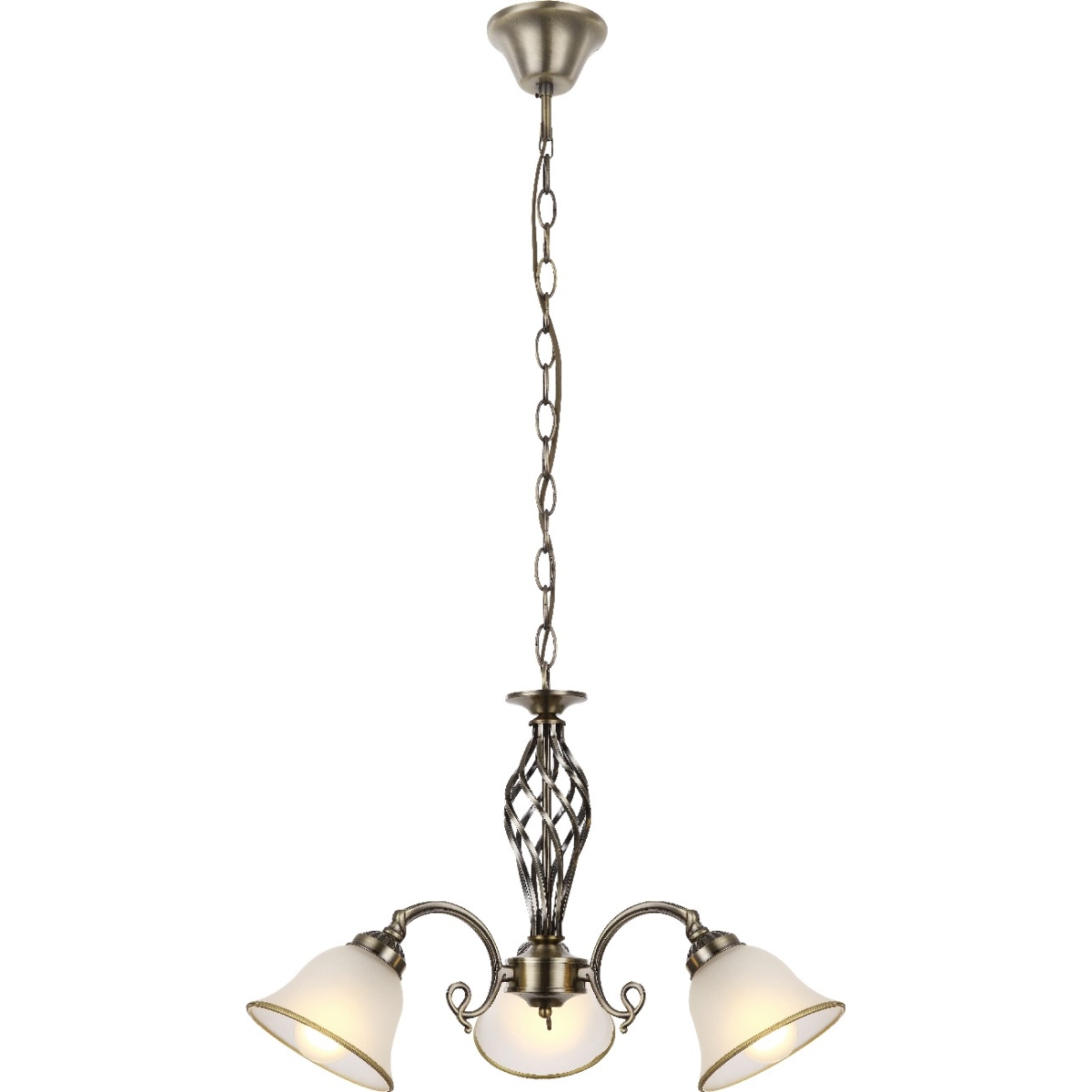 Ovaj tradicionalni luster, iz serije Odin, karakteriše se svojim prelepim dizajnom, kao i visokokvalitetnom izradom. U proizvodnji ove viseće lampe odabrani su stari mesing i satensko staklo, što joj daje prelep izgled. Sa prečnikom od 60 cm, ova viseća lampa viri 1,2 metra u prostoriju. Tri E27 grla postavljena na zakrivljenim krakovima pružaju vam mogućnost korišćenja bilo kog izvora svetlosti (maks. 60W). Preporučujemo LED sijalice zbog njihove izdržljivosti i uštede energije. Ovaj klasični luster se može veoma dobro kombinovati sa drugim proizvodima iz iste serije.