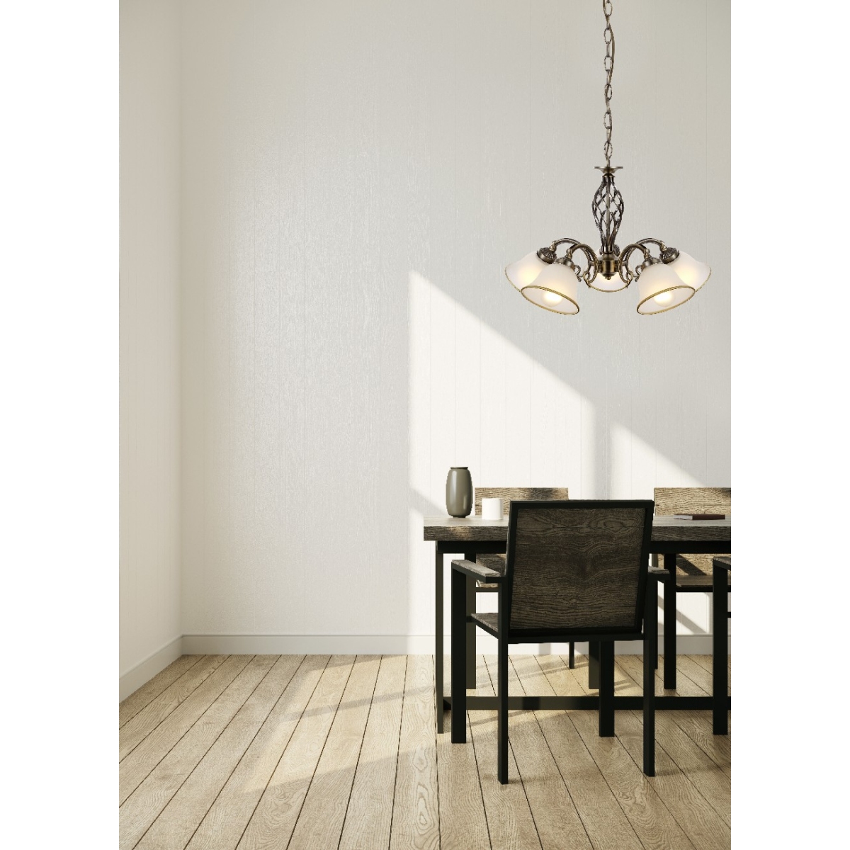 Ovaj tradicionalni luster, iz serije ODIN, karakteriše njegov prelepi dizajn, kao i njegova visokokvalitetna izrada. U izradi ove viseće lampe odabrani su stari mesing i satinirano staklo, koji ovoj lampi daju predivan izgled. Prečnika 60 cm, ova viseća lampa prodire 1,2 metra u prostoriju. Pet E27 grla montiranih na zakrivljenim granama nudi vam mogućnost korišćenja bilo koje sijalice (max. 60W). Preporučujemo LED sijalice zbog njihove trajnosti i uštede energije. Ovaj klasičan luster se veoma dobro može kombinovati sa drugim proizvodima iz iste serije.