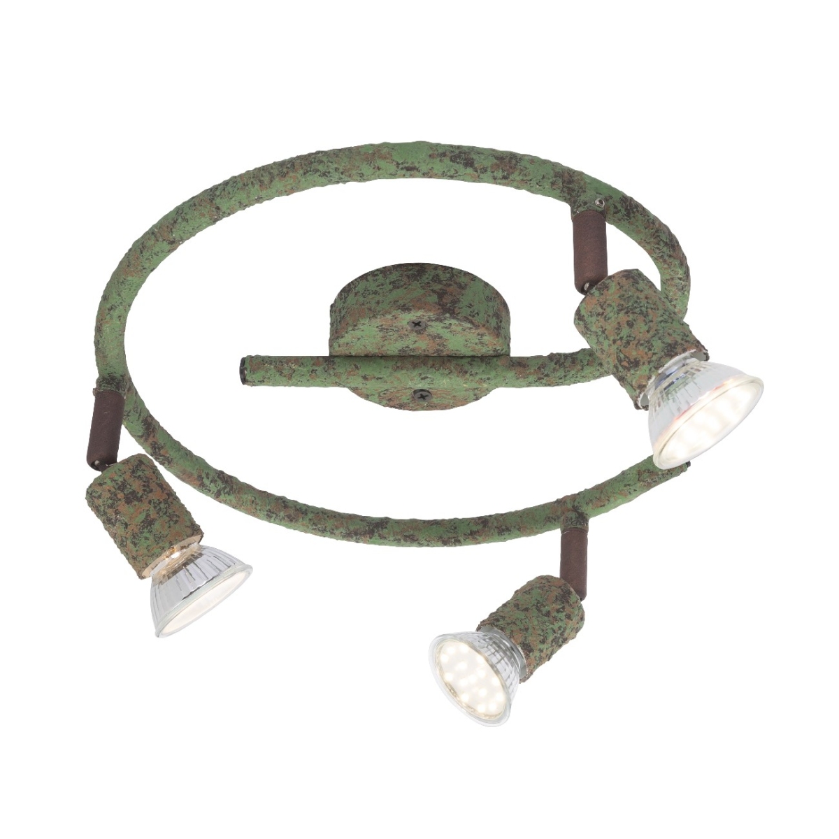 Plafonski reflektor serije OLANA ističe se svojim individualnim dizajnom. Napravljen od zelenog metala boje rđe, ovaj reflektor daje vašim prostorijama poseban dodir. Tri pokretna spota, pričvršćena za krutu granu u obliku slova E, svaki ima 3W GU10 LED sijalicu, koje zajedno obezbeđuje 750 lumena jake svetlosti sa prijatnim toplo belim svetlom od 3000K. Uz ostale reflektore iste serije modela, sliku možete upotpuniti u svojim prostorijama.