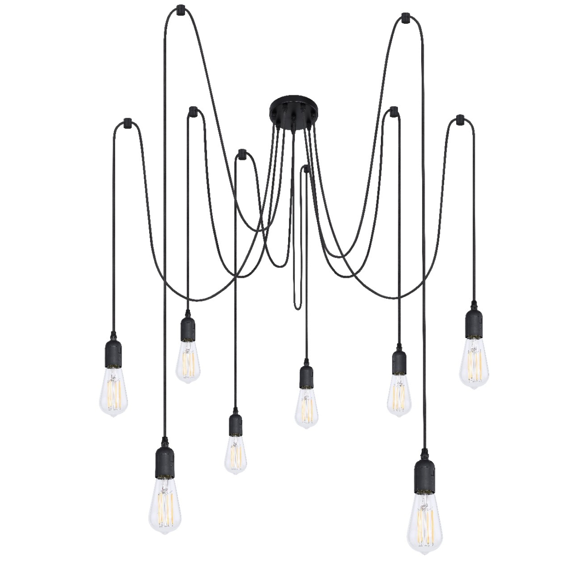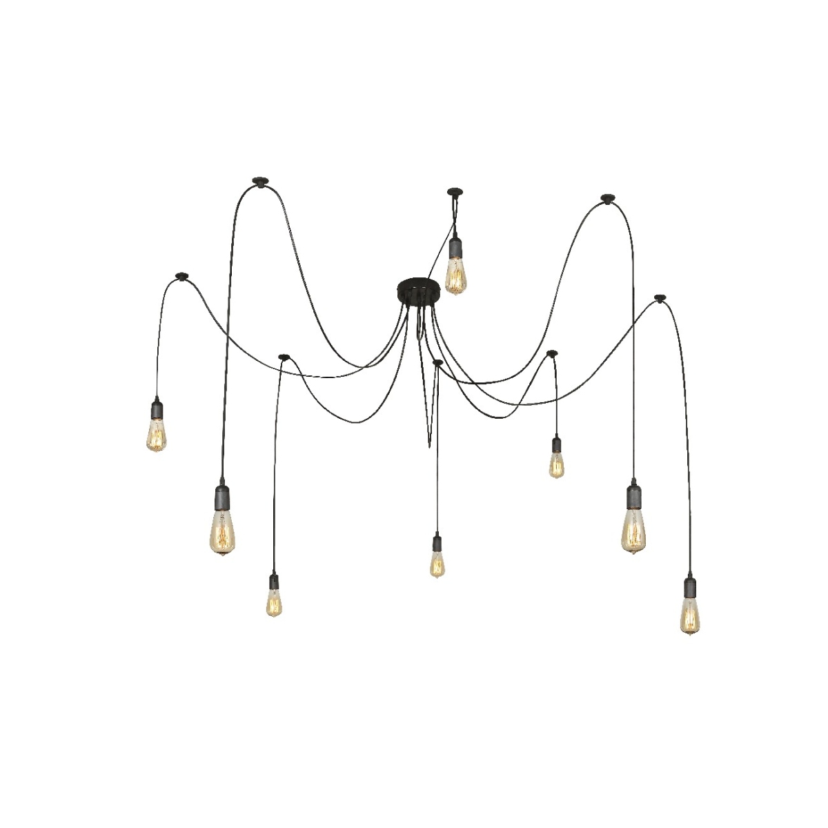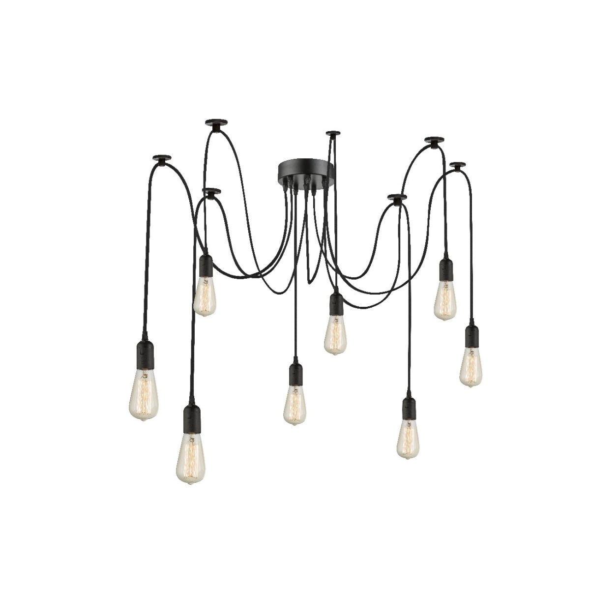 Jednostavna, ali upečatljiva viseća lampa Oliver može se individualno dizajnirati. Crni, različito dugi kablovi pojedinačnih lampi mogu se po želji pričvrstiti za plafon i podesiti po visini. Osam grla E27 (maks. 60W) vam daje mogućnost da sami odredite intenzitet i boju svetlosti izborom svetiljki.