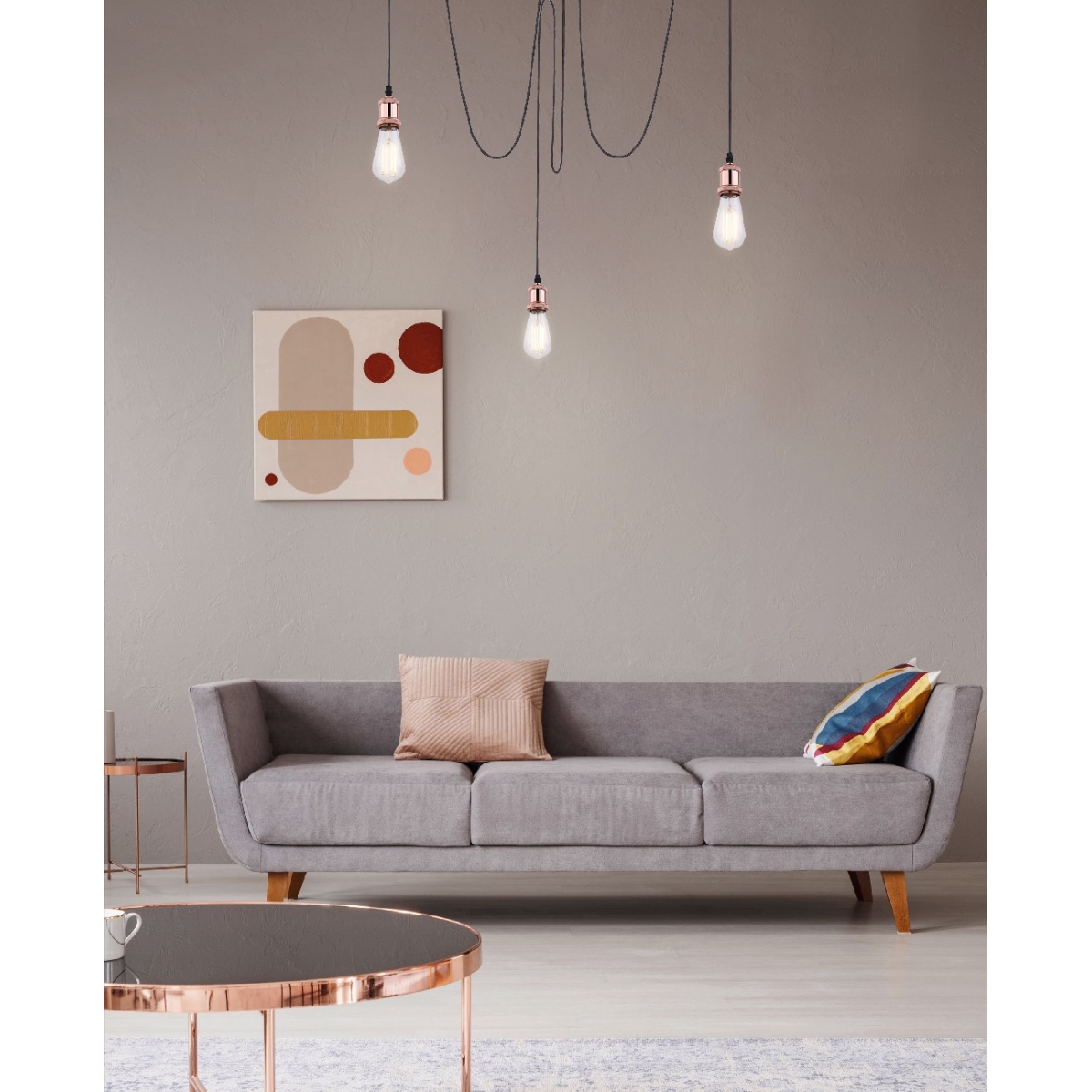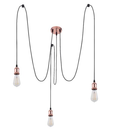 Ova prelepa i vanvremenska bakarna visilica deo je serije OLIVER. Kroz tri crna tekstilna kabla, od kojih svaki ima dužinu od 2 metra, velike prostorije se mogu osvetliti do poslednje u potpunosti. Zbog slobodnog izbora izvora svetlosti (E27/max. 40W) možete sami odrediti svetleći intenzitet i laganu boju. Zbog njihove dugovečnosti preporučujemo LED sijalice. Kroz druge modele ove serije dodatno možete ulepšati sliku svog prostora.