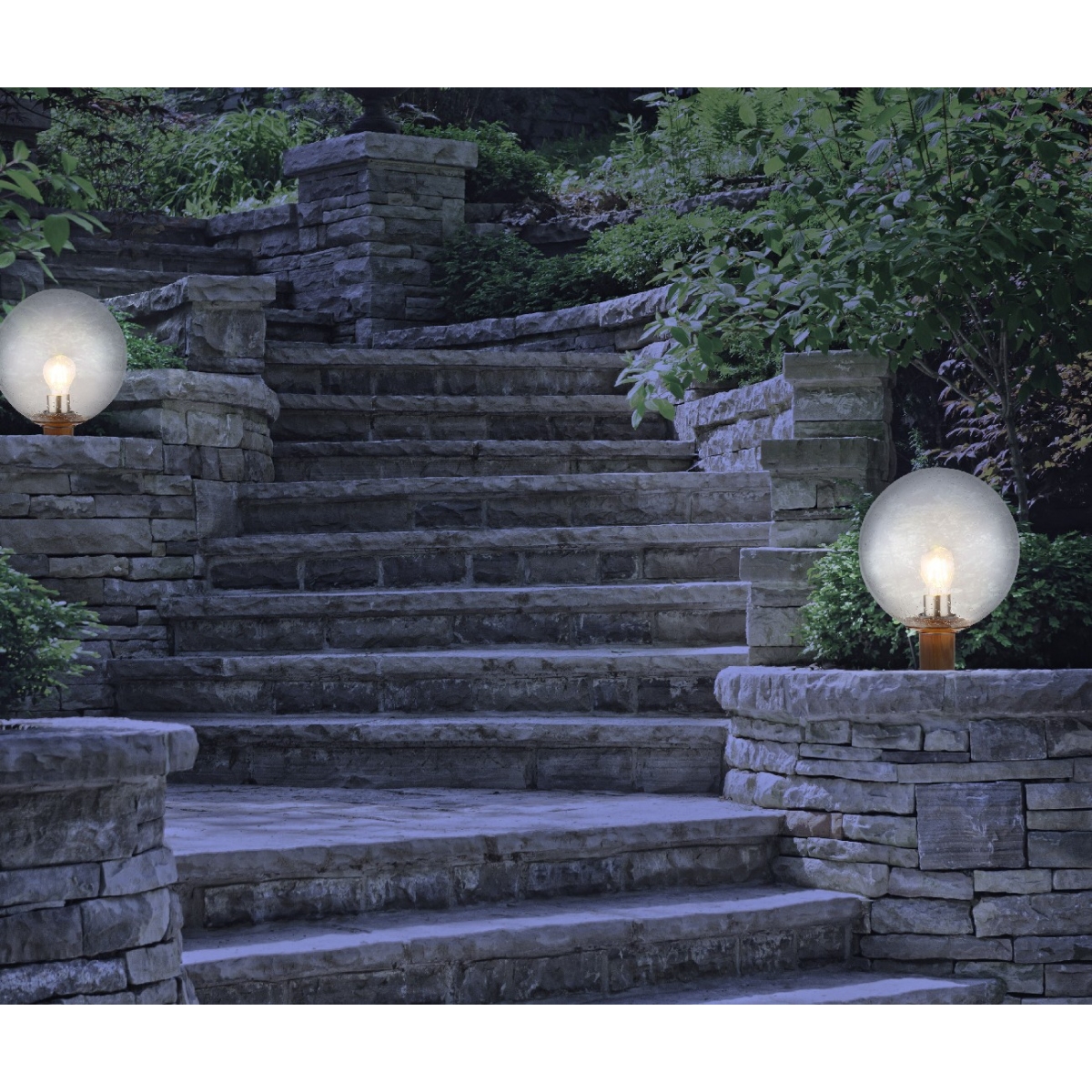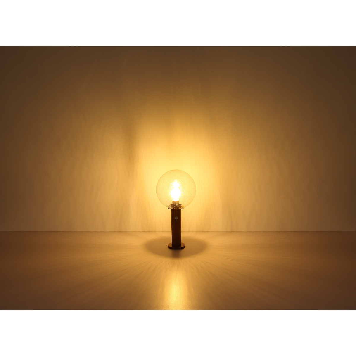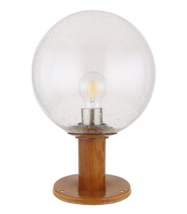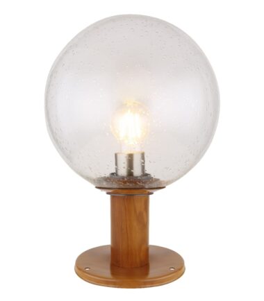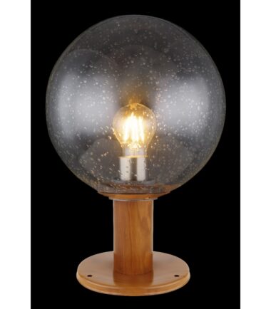 Ova vanvremenska lampa na otvorenom (Ø25cm) serije OSSY idealna je sa visinom od 38cm kao podna lampa i pravi odličnu celokupnu sliku zbog prelepog drvenog izgleda. Iz cilindričnog tela u prelepom drvenom izgledu istureno je E27 LED grlo koje može biti opremljeno sijalicom po vašem izboru, do maksimalne snage od 15 vati. Okrugla staklena kugla sa mehurićima prekriva E27 LED grlo i pruža zaštitu od prskanja vodom.