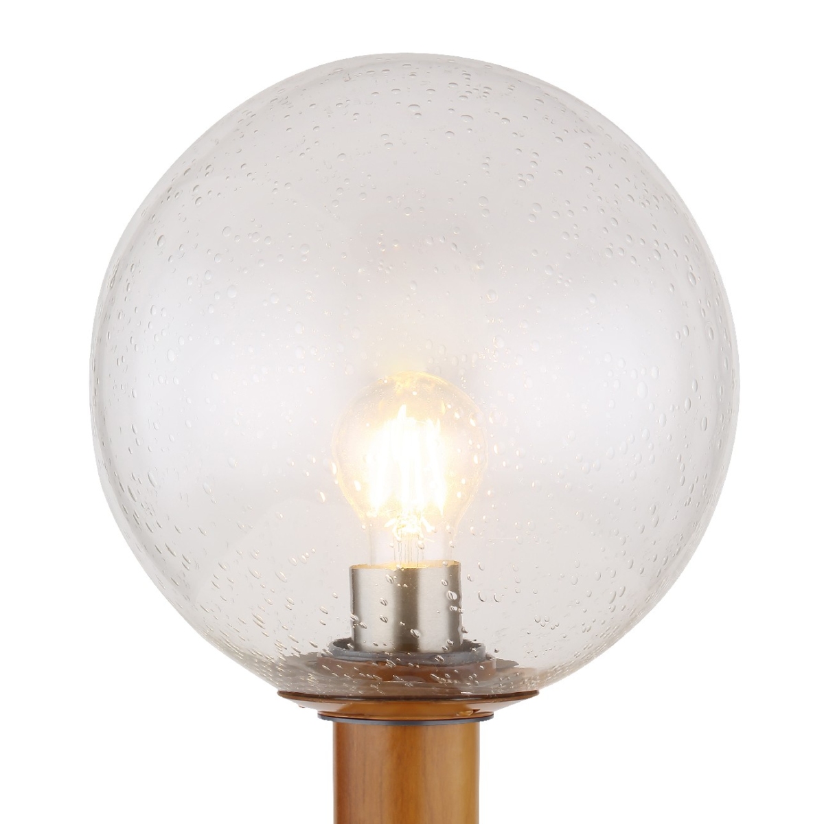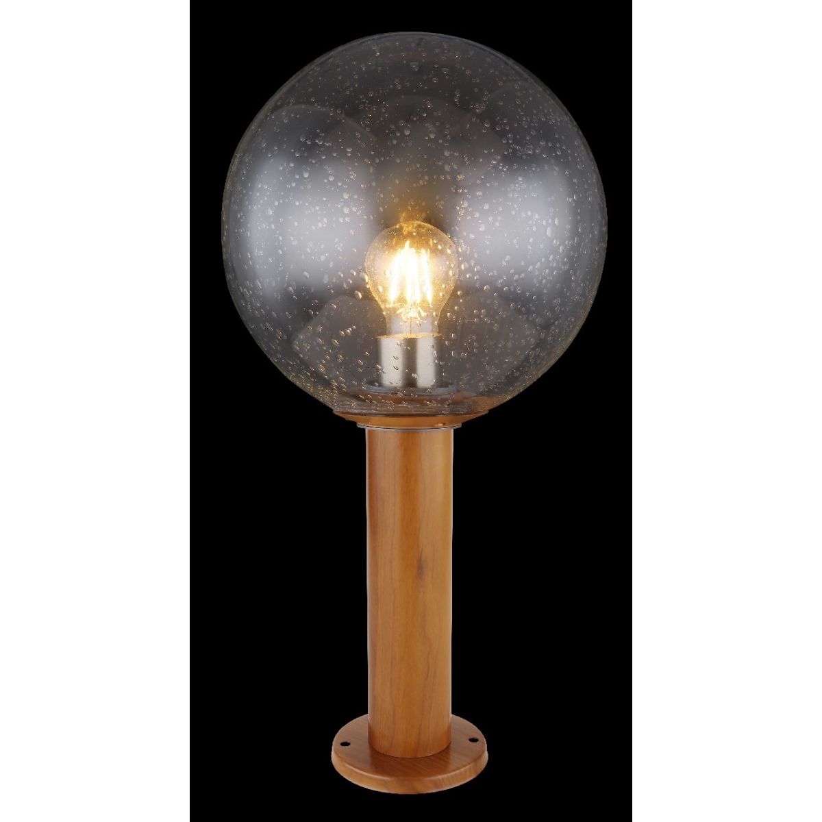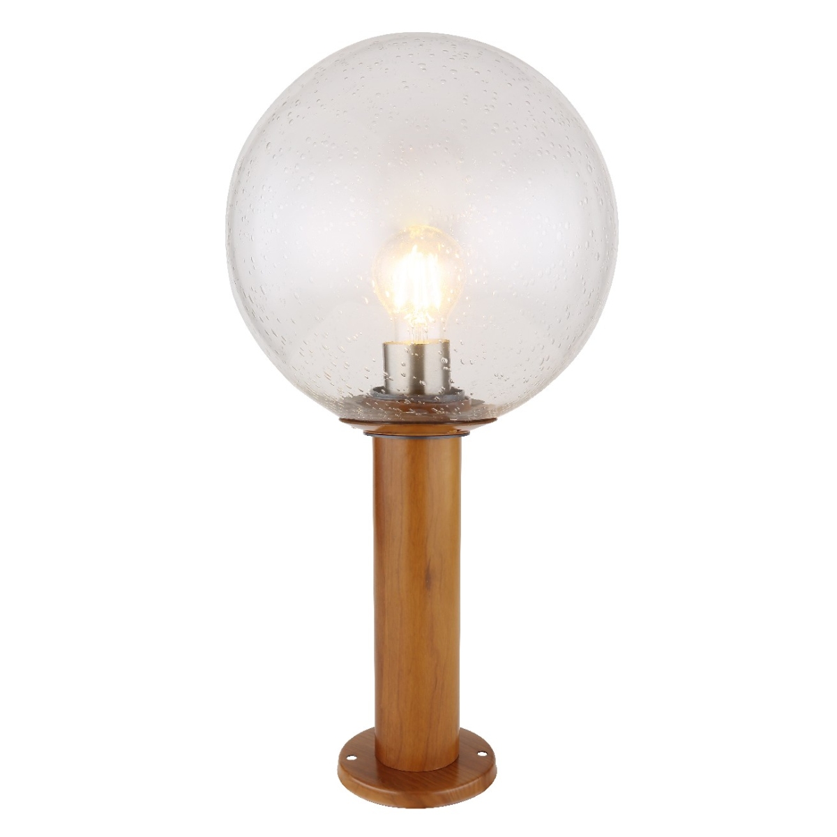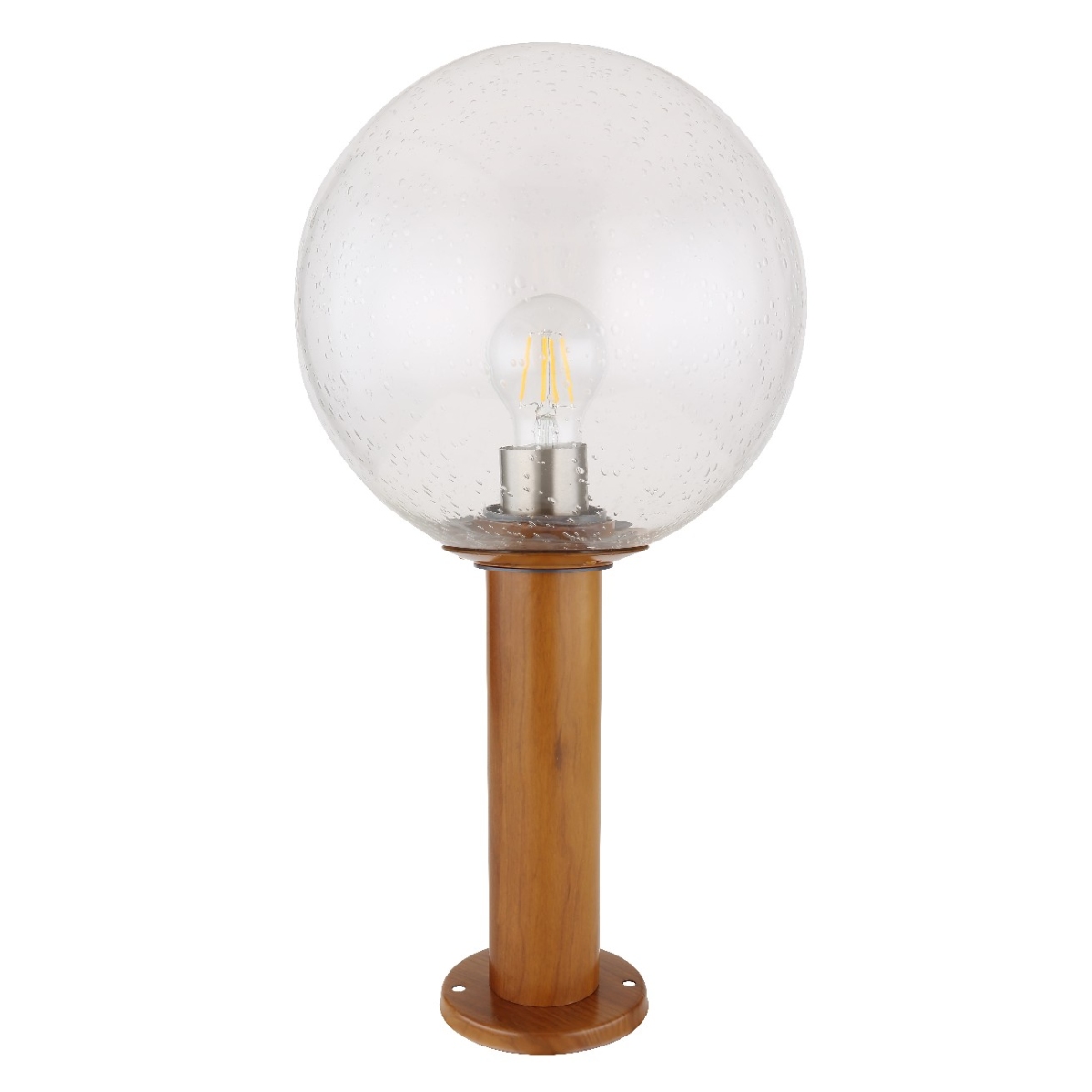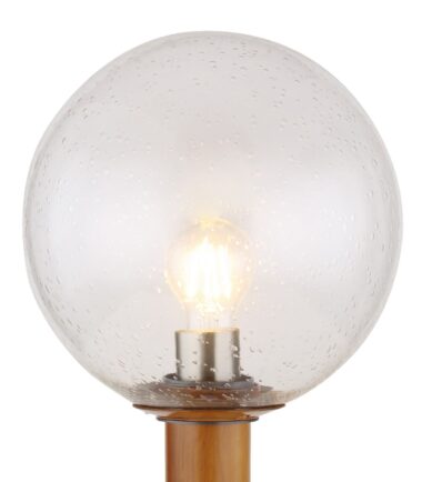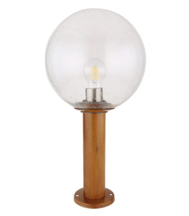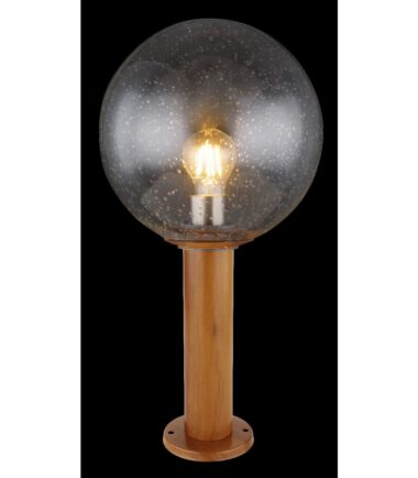 Ova vanvremenska spoljašnja lampa (Ø25cm) serije OSSY idealna je sa visinom od 50cm kao podna lampa na otvorenom i pravi odličnu celokupnu sliku zbog prelepog drvenog izgleda. Iz cilindričnog tela u prelepom drvenom izgledu istureno je E27 LED grlo koja može biti opremljeno sijalicom po vašem izboru, do maksimalne snage od 15 vati. Okrugla staklena kugla sa mehurićima prekriva E27 LED grlo i pruža zaštitu od prskanja vodom.