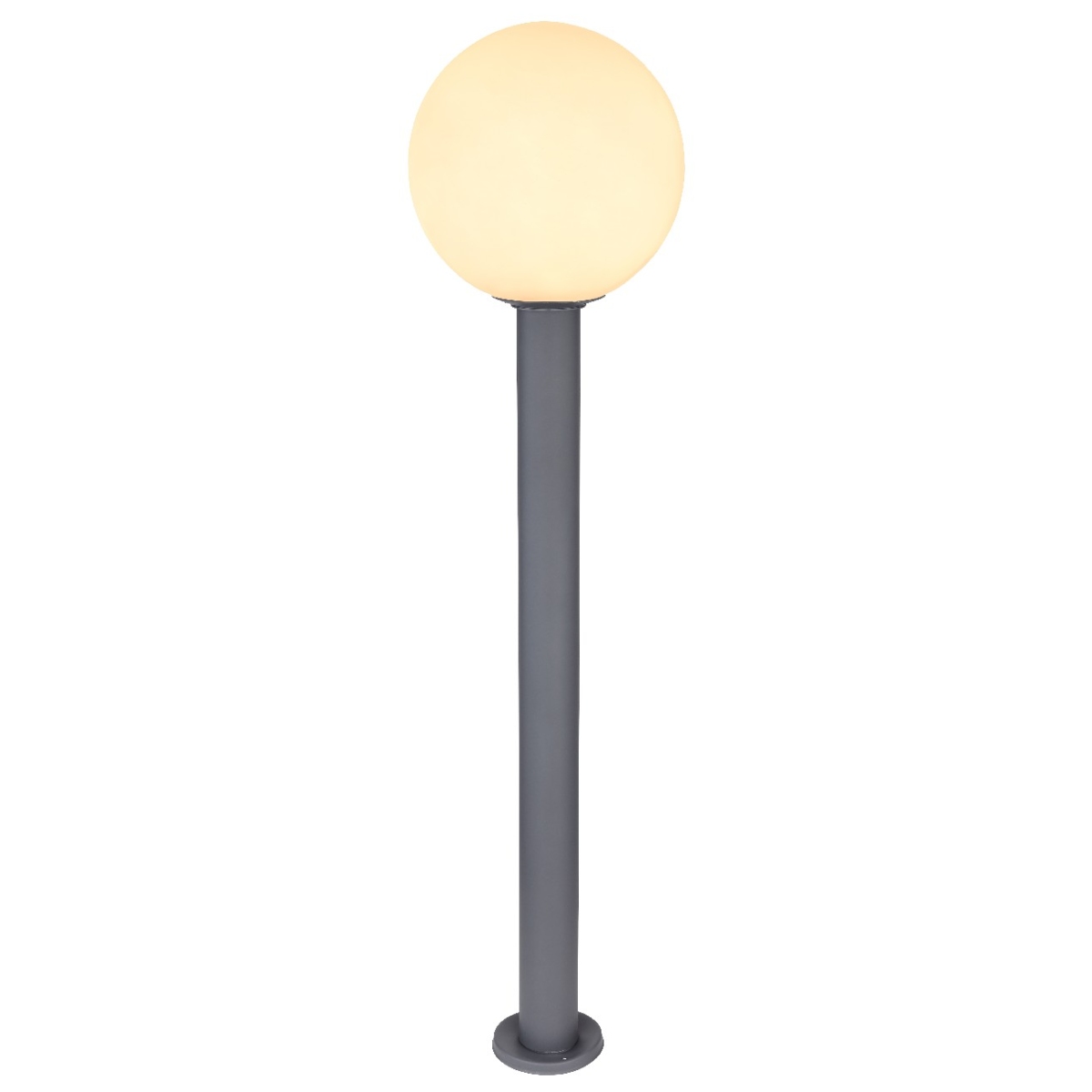 Ova spoljašnja lampa (zaštitna klasa IP44) je divan dodatak vašoj terasi ili vrtu. 100 cm velika spoljna lampa sastoji se od cilindra napravljenog od aluminijuma u boji antracita, lako se može fiksirati na ravnim površinama. Pored toga, ima opalnu staklenu kuglu (ø 25 cm), koju možete opremiti E27 LED sijalicom po vašem izboru. To vam pruža mogućnost da pojedinačno odredite boju svetla i jačinu. Pomoću drugih artikala iste serije možete da postavite elegantne akcente na otvorenom prostoru i dovršite celokupnu sliku.
