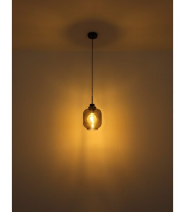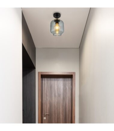 Ova jednostavna plafonska lampa impresionira svojim prelepim dizajnom. Iz okruglog plafonskog nosača crna boja (Ø 10cm) sa ukrasima u bronzi istureno je E27 grlo sa oblikovanim staklenim abažurom u boji dima (Ø 18cm). Grlo E27 vam omogućava maksimalnu snagu od 40 vati da sami odredite boju svetla i jačinu. Zbog dugovečnosti i uštede energije preporučujemo LED sijalice.