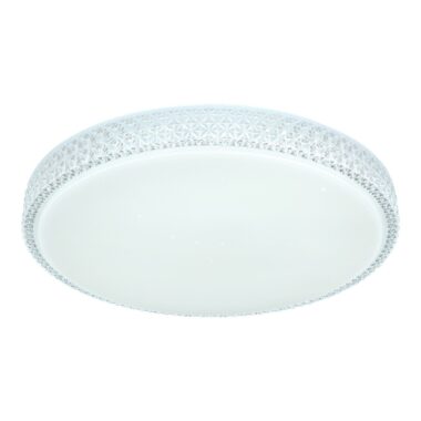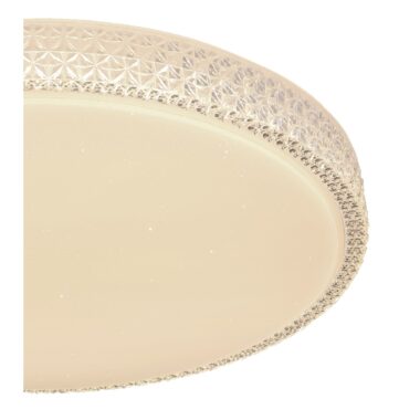 Ova okrugla (Ø60cm) LED plafonska lampa impresionira svojom izradom i plemenitim dizajnom. Kombinacija belog metala, Sparekle dekora i providnih plastičnih kristala svakako privlači pažnju! Pored toga, boja svetlosti se može menjati u tri faze pomoću zidnog prekidača po želji. (Toplo bela 3000K – neutralno bela 4000K – hladno bela 6000K).