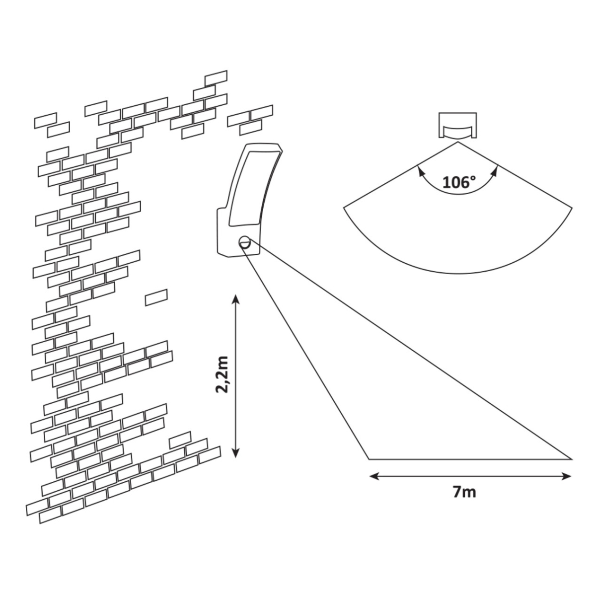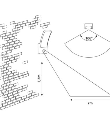 Spoljna zidna lampa Palanga modernog stila sa senzorom pokreta je napravljena od aluminijuma u antracit sivoj boji i dopunjena je belim plastičnim abažurom. Može se postaviti na terasu ili bilo gde na spoljašnjem zidu vaše kuće gde je osvetljenje potrebno za bezbedno kretanje. Palanga sadrži ugrađeni LED izvor svetlosti snage 12W, svetlosnog toka od 800 lumena i životnog veka od 25.000 sati. Sijalica ima temperaturu boje od 3000K i shodno tome sija toplom belom svetlošću. Dimenzije ovog spoljnog svetla su sledeće: širina 75mm, visina 240mm, rastojanje od zida 165mm. Senzor detektuje kretanje sa udaljenosti od 7 metara pod uglom gledanja od 106°. Ova lampa ima IP44 zaštitu koja obezbeđuje da je zaštićena od upada predmeta prečnika do 1 mm i od prskanja vode iz bilo kog smera. Na spoljnu zidnu lampu Palanga sa senzorom pokreta nudimo 5 godina garancije.