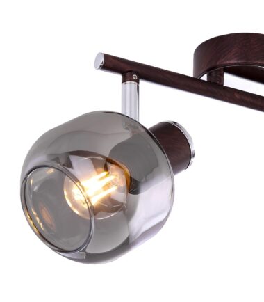 Ovaj reflektor impresionira svojom jednostavnom elegancijom. Kombinacija bronzano obojenog metala sa zadimljenim staklom donosi kućni ambijent u vaše životne prostore. Dva pokretna spota montirana su na 25 cm dugačkoj grani. Dostupna E14 grla ovog pokretnog reflektora omogućavaju vam da sami odredite osvetljenje i samim tim svetleći intenzitet i laganu boju (max. 40W). Zbog njihove trajnosti i uštede energije preporučujemo LED sijalice. Ostali artikli iz ove serije pružiće vam skladno životno iskustvo.