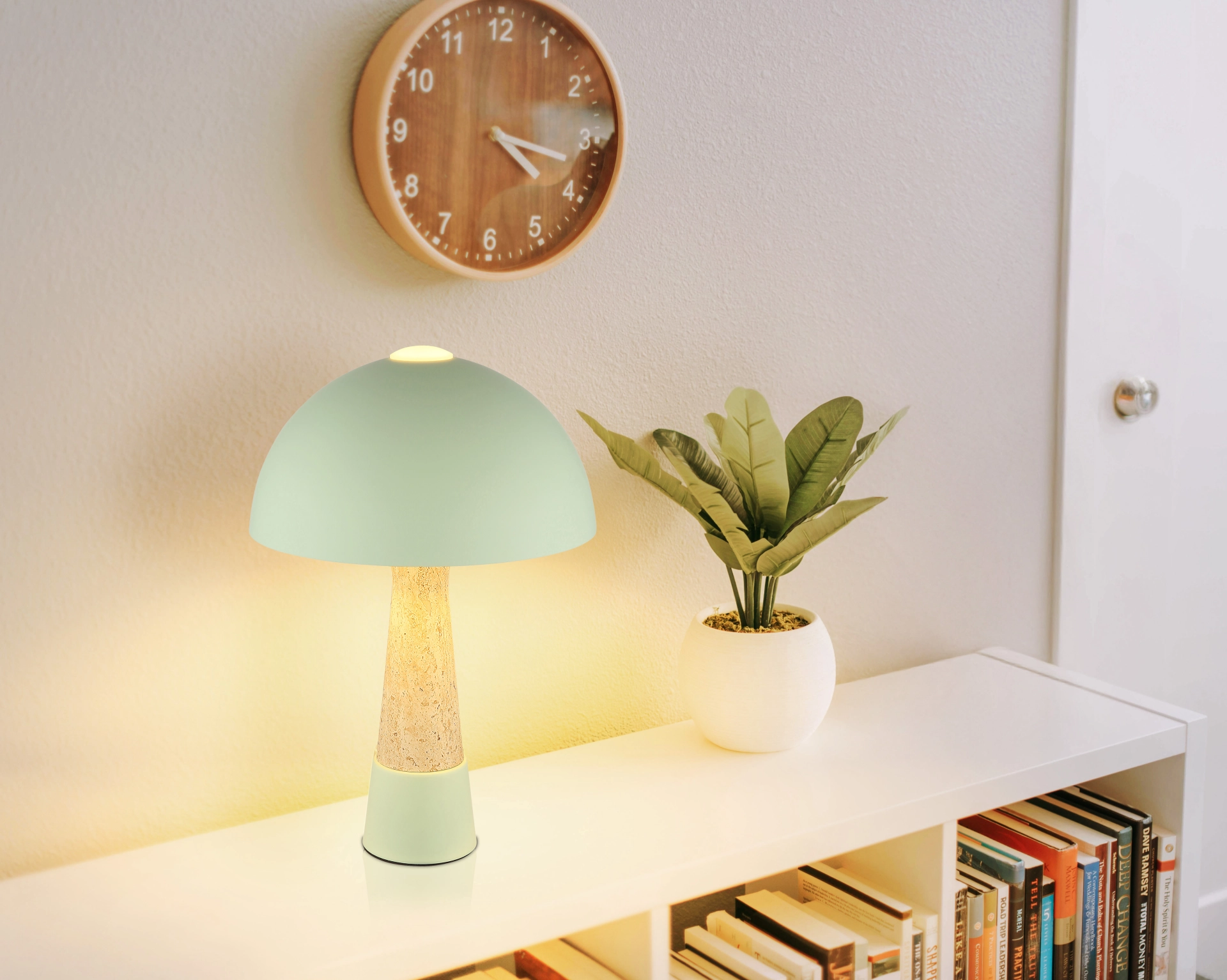 Okrugla stona lampa PAULIN impresionira svojim prepoznatljivim oblikom pečurke i harmoničnom kombinacijom boja mat zelene i travertin izgleda. Okruglo, mat zeleno metalno kućište stilski se stapa sa podjednako mat zelenim metalnim abažurom, dajući lampi moderan, ali prirodan izgled. Sa prečnikom od 250 mm, PAULIN je idealna za stolove, noćne stočiće ili bočne stočiće, stvarajući ugodnu atmosferu. Praktični prekidač na kablu omogućava lako i udobno rukovanje. Opremljena grlom E27 (sijalica nije uključena), PAULIN nudi maksimalnu fleksibilnost u izboru pravog izvora svetlosti — bilo da je to topla ili neutralna bela, u zavisnosti od ličnih preferencija. Visokokvalitetna izrada i jedinstveni dizajn čine PAULIN stilskim akcentom u svakoj prostoriji. Bilo da se radi o radnom osvetljenju ili udobnom akcentnom osvetljenju — PAULIN savršeno kombinuje funkcionalnost i estetiku.