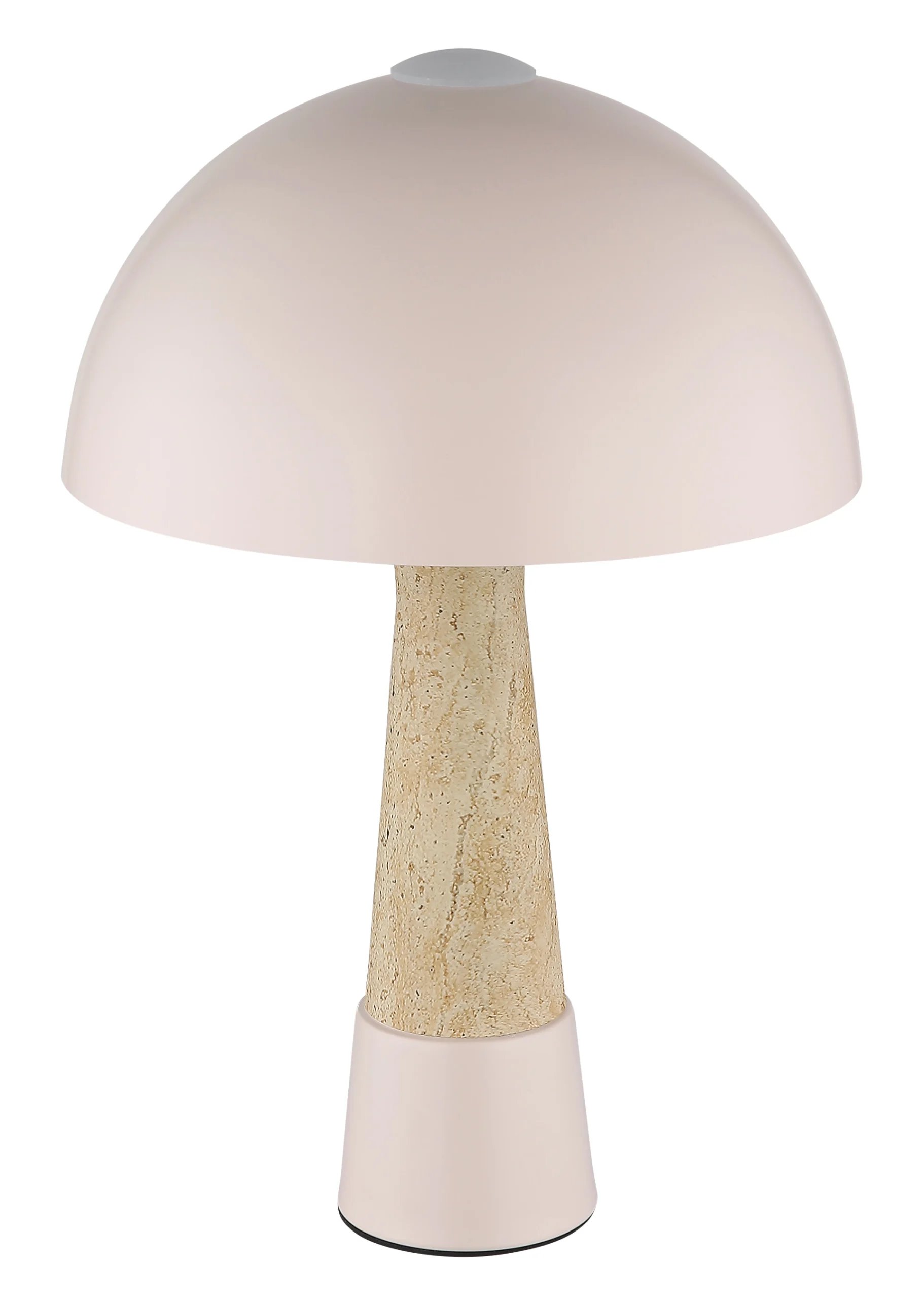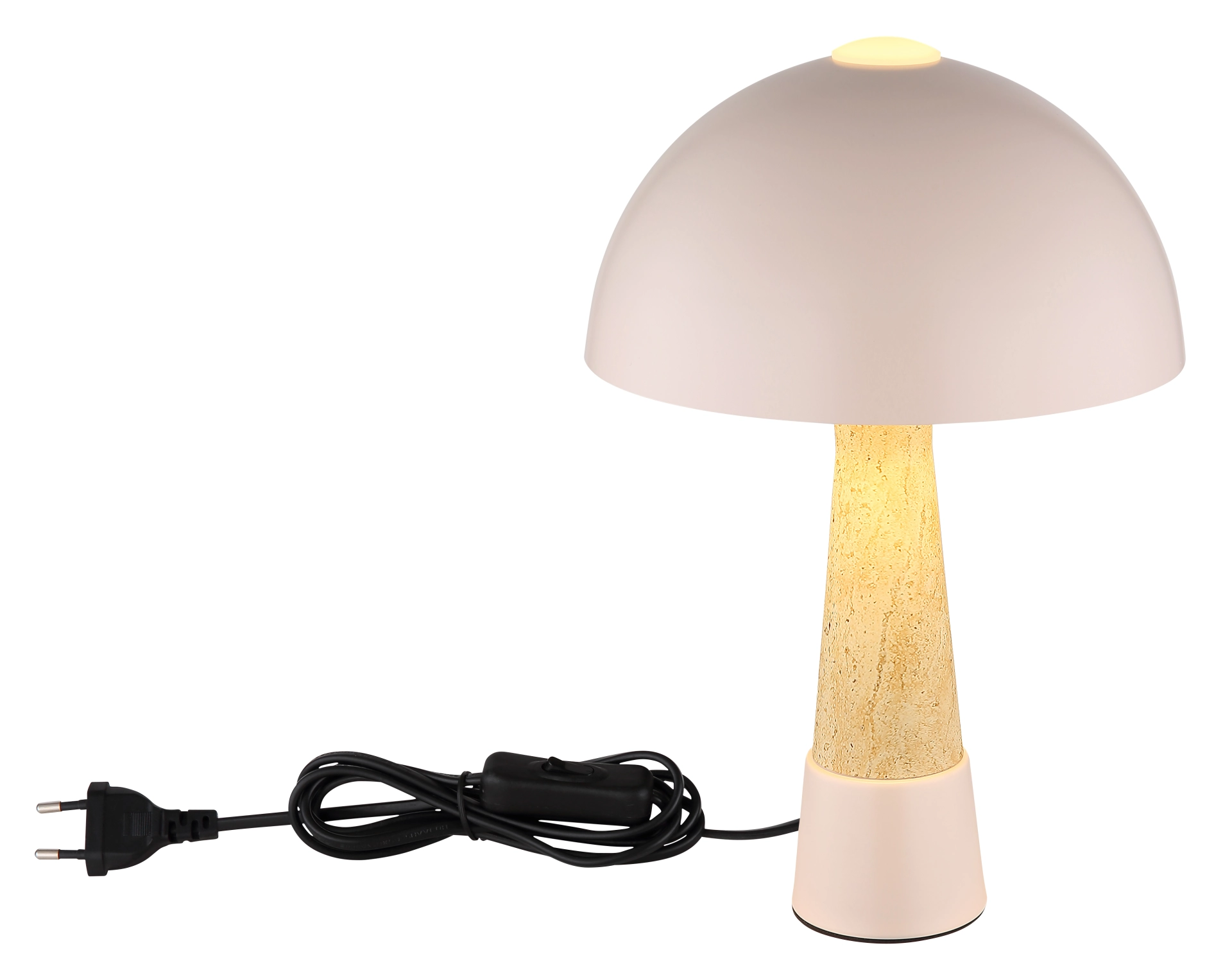 Okrugla stona lampa PAULIN impresionira svojim prepoznatljivim oblikom pečurke i elegantnom kombinacijom mat metala boje šampanjca i izgleda travertina. Okruglo metalno kućište u mat boji šampanjca savršeno se usklađuje sa podjednako mat metalnim abažurom, dajući lampi moderan, topao izgled. Sa prečnikom od 250 mm, PAULIN je idealna za stolove, noćne stočiće ili bočne stočiće, stvarajući prijatno, atmosfersko svetlo. Praktični prekidač na kablu omogućava udoban i jednostavan rad. Opremljena grlom E27 (sijalica nije uključena), PAULIN nudi maksimalnu fleksibilnost u izboru pravog izvora svetlosti – bilo da je to topla ili neutralna bela, u skladu sa individualnim potrebama. Visokokvalitetna izrada i pažljiv dizajn čine PAULIN stilskim akcentom u svakoj prostoriji. Bilo da se radi o funkcionalnom radnom osvetljenju ili udobnom akcentnom osvetljenju – PAULIN savršeno kombinuje estetiku i funkcionalnost.