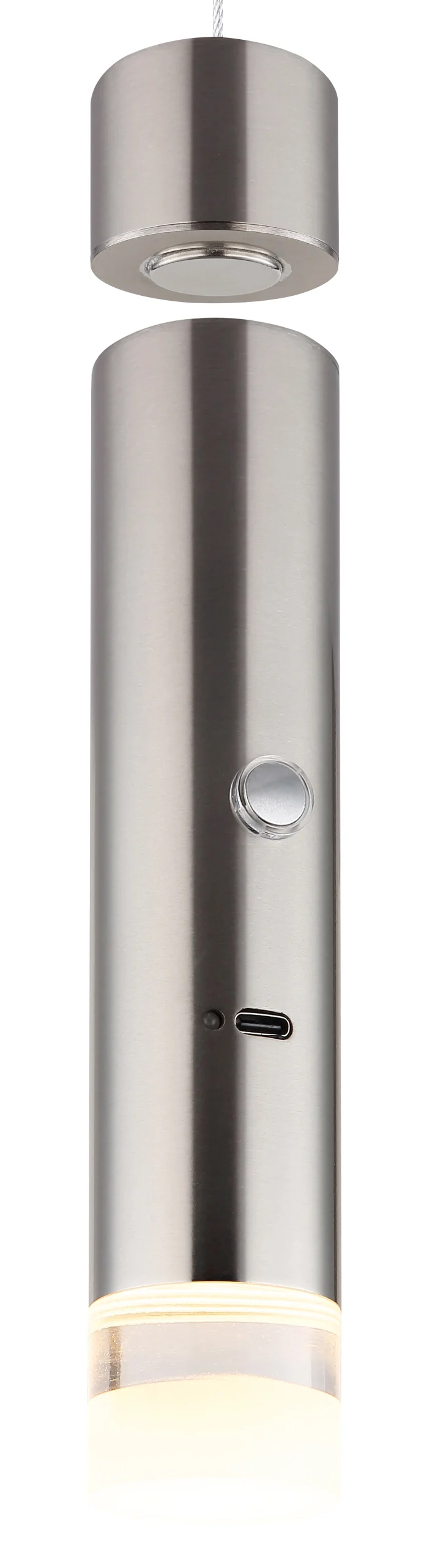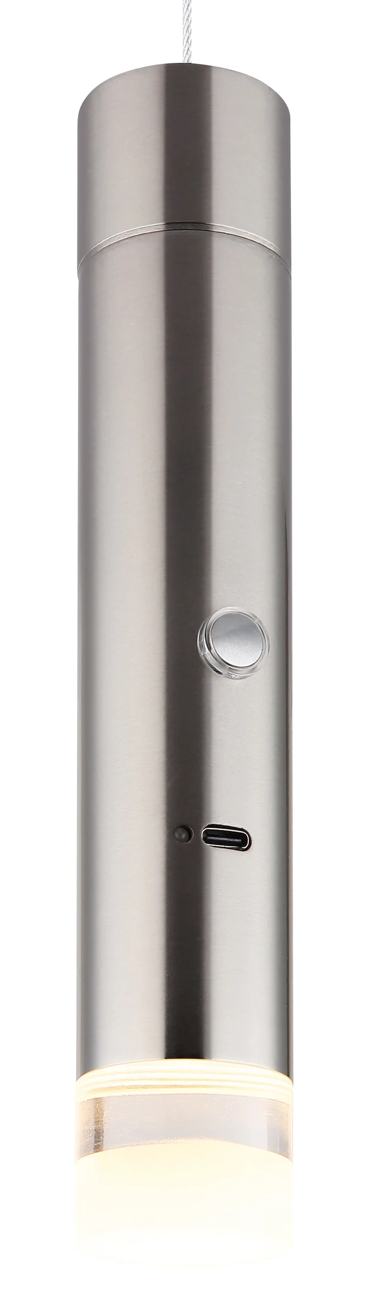 VISEĆA LAMPA METAL NIKL MAT kombinuje moderan dizajn sa praktičnom funkcionalnošću. Cilindrični abažur napravljen od providnog, satenskog akrila pruža ravnomerno i prijatno svetlo. Telo napravljeno od mat nikla daje visećoj lampi elegantan i bezvremenski izgled. Osvetljenost se može individualno podešavati pomoću bezstepenog dodirnog dimera, dok funkcija memorije čuva vaše željeno podešavanje svetla. USB kabl za punjenje i adapter obezbeđuju lako rukovanje. Poseban naglasak: kišobran se može ukloniti i zatim služi kao praktična baterijska lampa. Tokom procesa punjenja, baterijska lampa nastavlja da svetli i nakon vremena punjenja od oko 3 sata traje oko 6 sati. Sa svetlosnim izlazom od 60 lumena i temperaturom boje od 3000K, ova lampa nudi i funkcionalnost i stil.